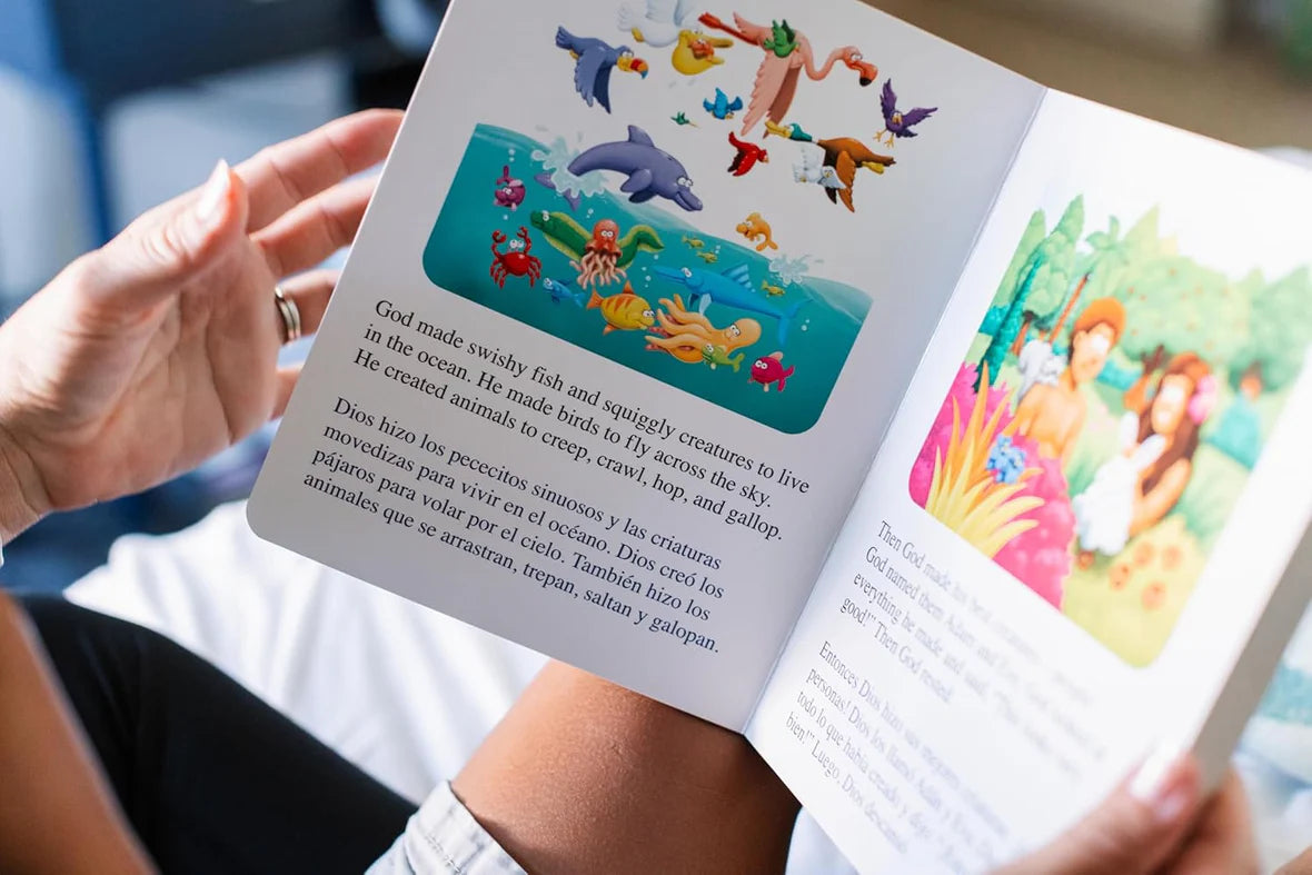 The Beginner’s Bible for Little Ones Bilingual Edition is the perfect starting point for the youngest children to learn about God’s Word. This storybook introduces toddlers to the Bible while strengthening their vocabulary in both English and Spanish and is part of The Beginner’s Bible® brand, the bestselling Bible storybook brand of our time, with more than 28 million products sold.