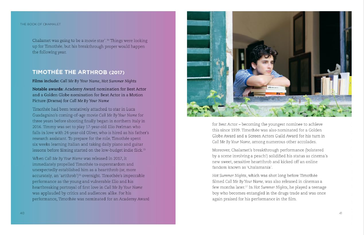 Timothée? Chala... may I?! This book is a celebration of the actor, style-icon and consummate heartthrob we all love!
