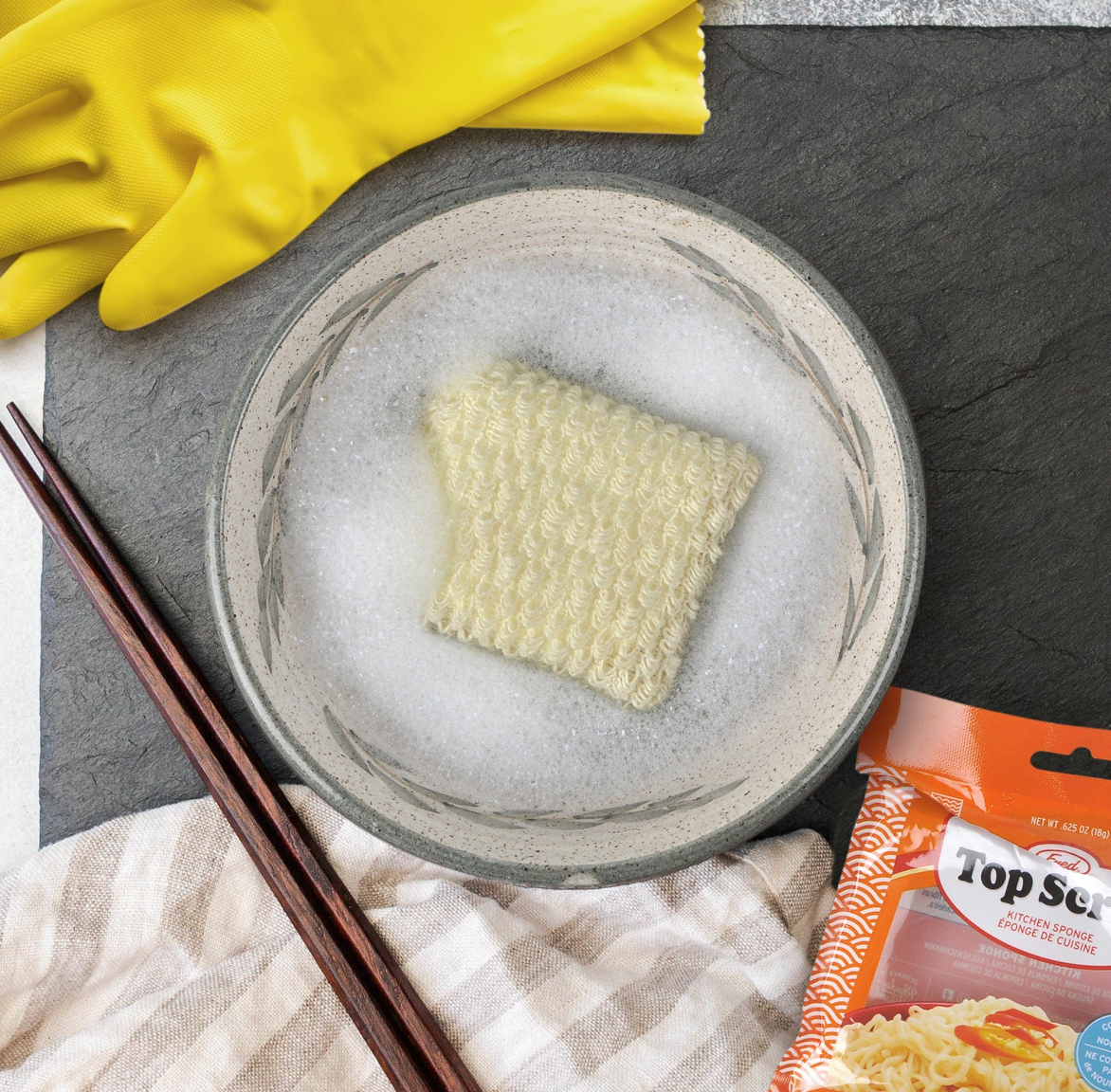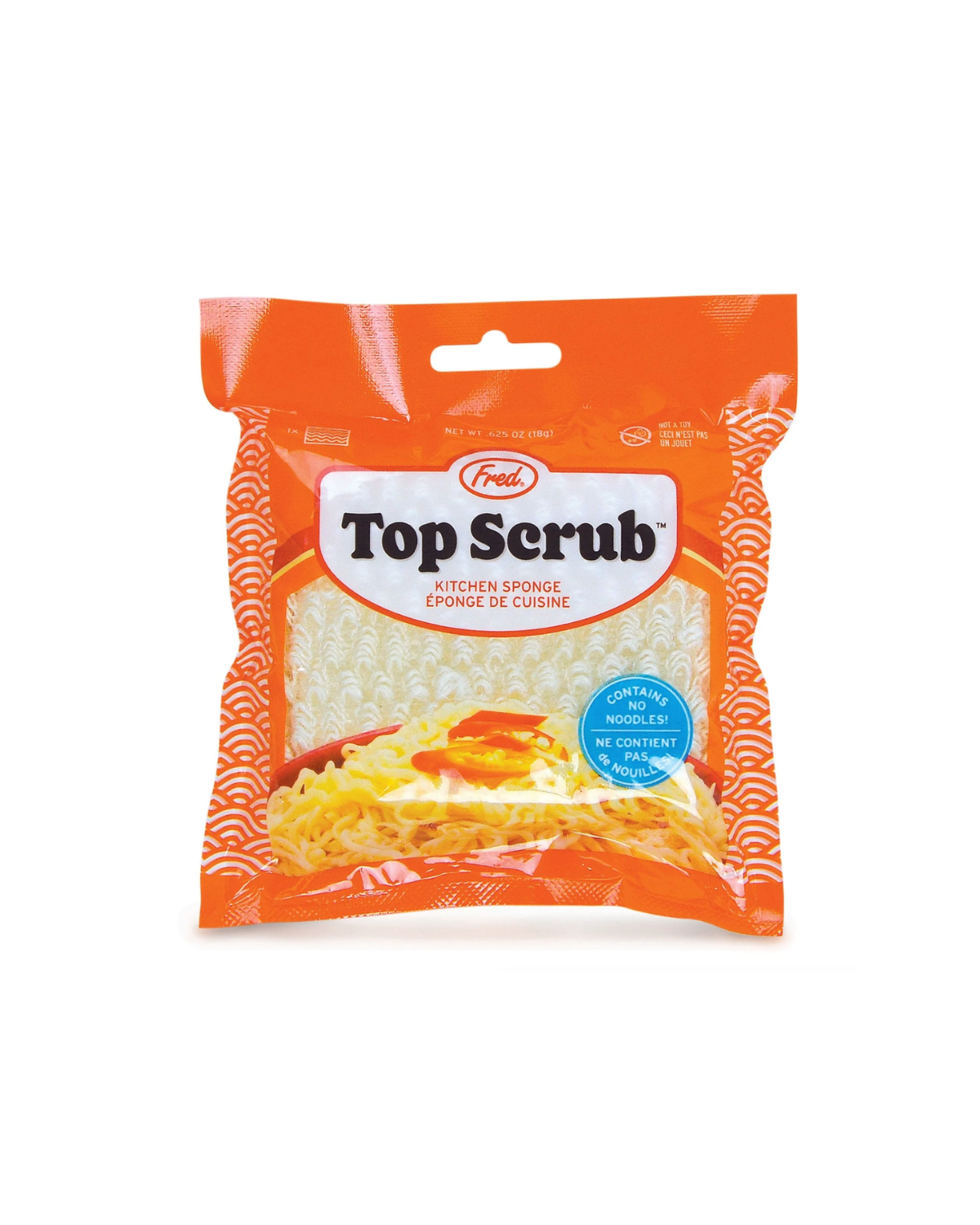 Top Scrub may look like packaged noodles, but it’s a hard-working, durable sponge – tough enough for dorm dishes, yet gentle for cookware and everyday use. It’s a great kitchen addition for your favorite hopeless ramen-tic, complete with all the nostalgia of the college dinner delicacy. Hemp and Polypropylene scrubber wrapped around an absorbent poly sponge. Measures 3.5 x 3.3 x 1″