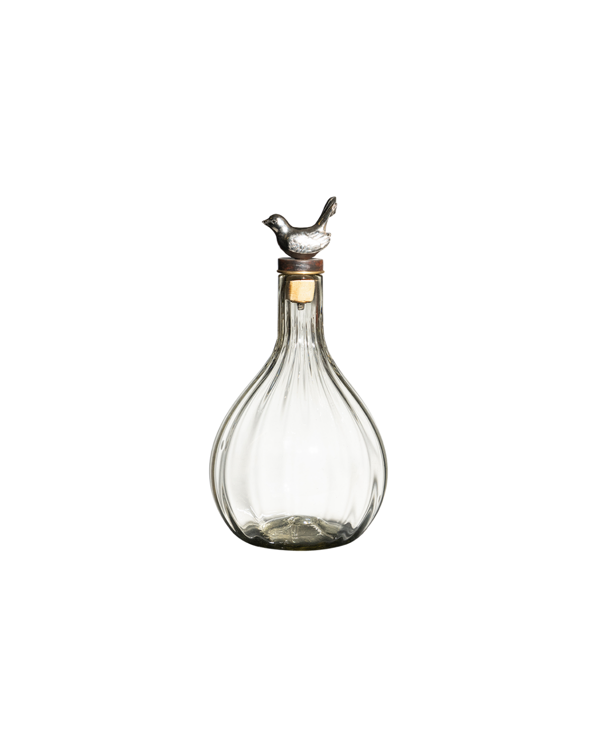 The Vuelo Decanter by Jan Barboglio pours on the charm with its ribbed, mouth-blown glass silhouette crowned by a nickel-plated paloma topper—proof that even your spirits deserve to take flight.