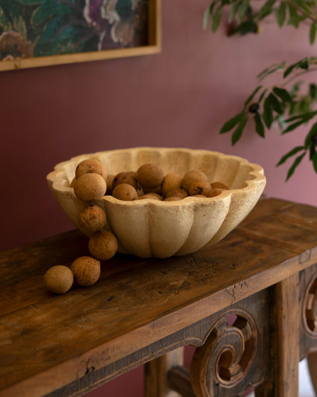 Faux Travertine Ruffled Bowl