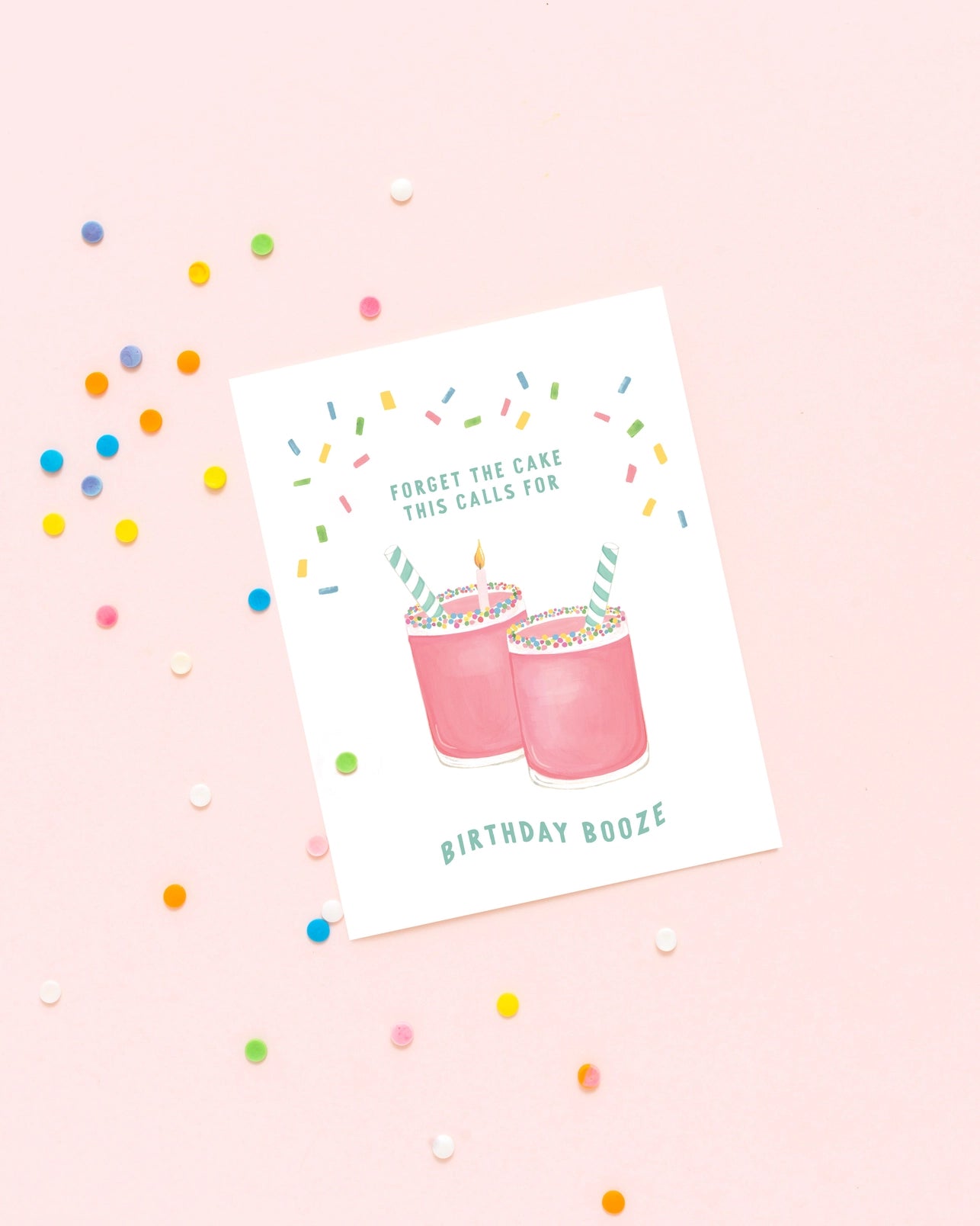 Birthday cake is nice and all but birthday cocktails (WITH sprinkles) are better! Wish your BFF a happy birthday with this celebratory card that reads "Forget the cake! This calls for birthday booze!"