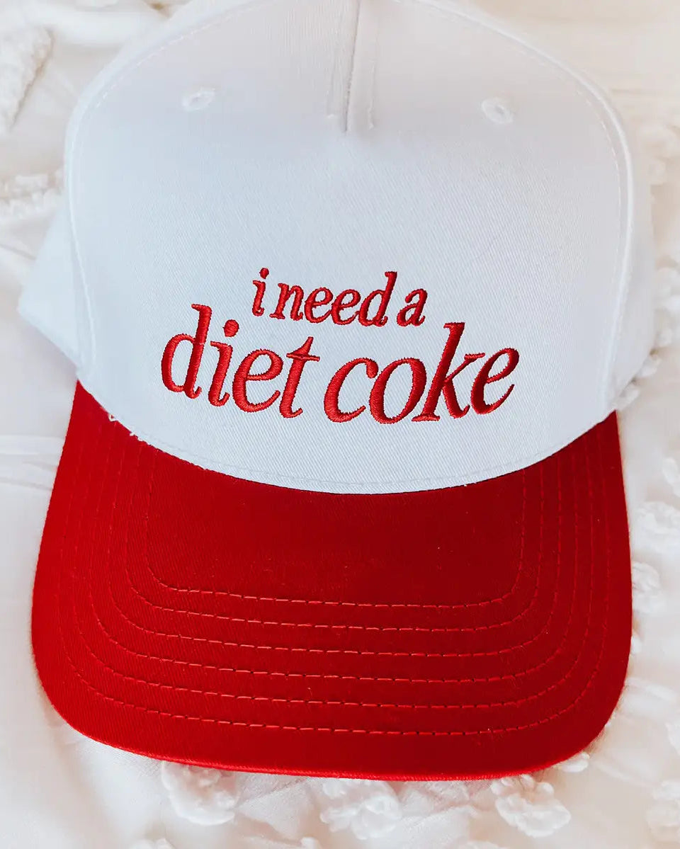 I Need A Diet Coke Embroidered Trucker Hat, Red/White