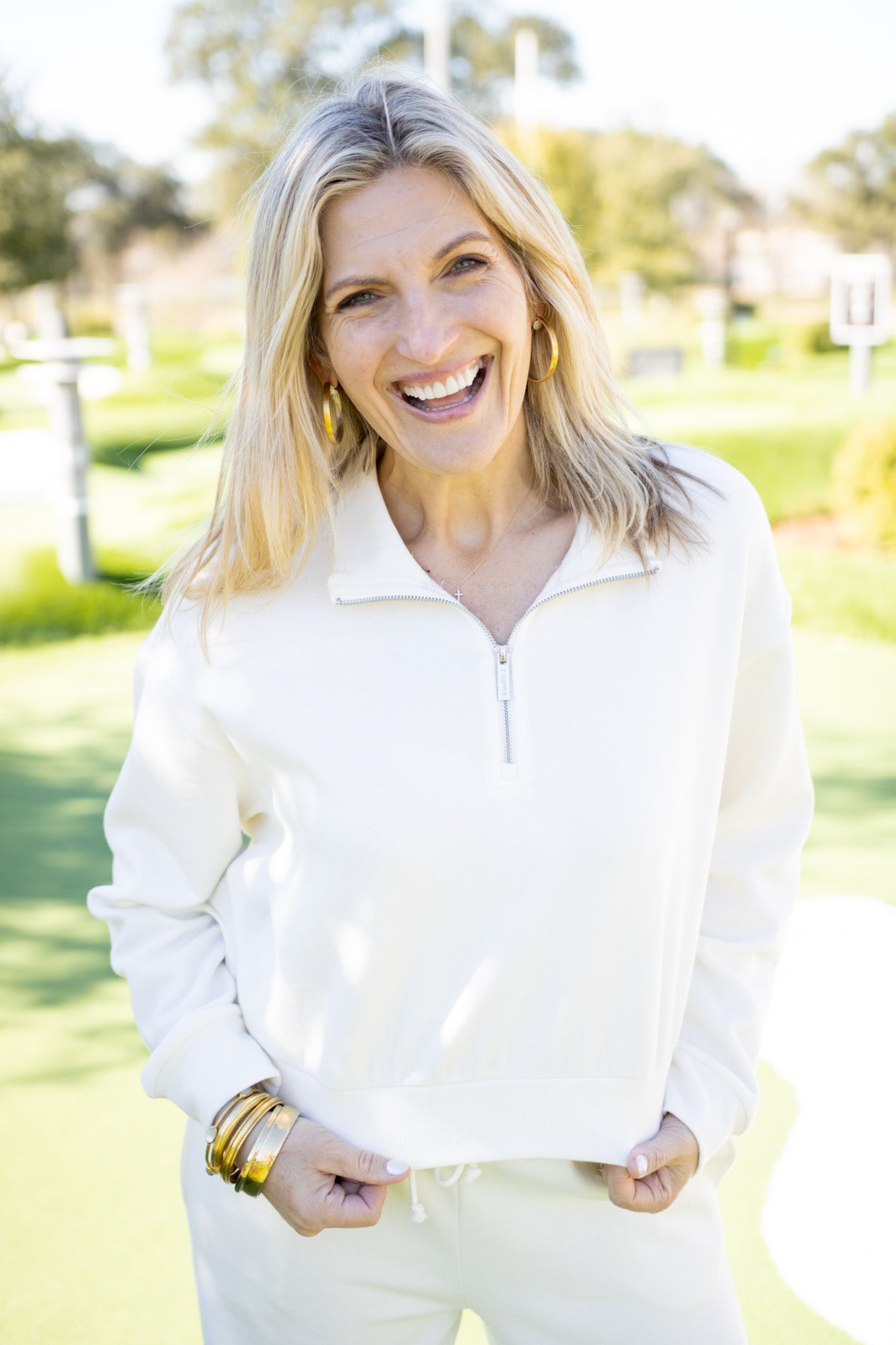 Cozy meets cool in this cloud-soft half zip sweatshirt. The relaxed fit wraps you in comfort while the half-zip lets you adjust your warmth on the fly. Layer it over a tee for extra dimension, or match it with the Downtown Wide Leg Sweatpant for an effortlessly coordinated look that feels as good as it looks. Your new favorite piece is calling.