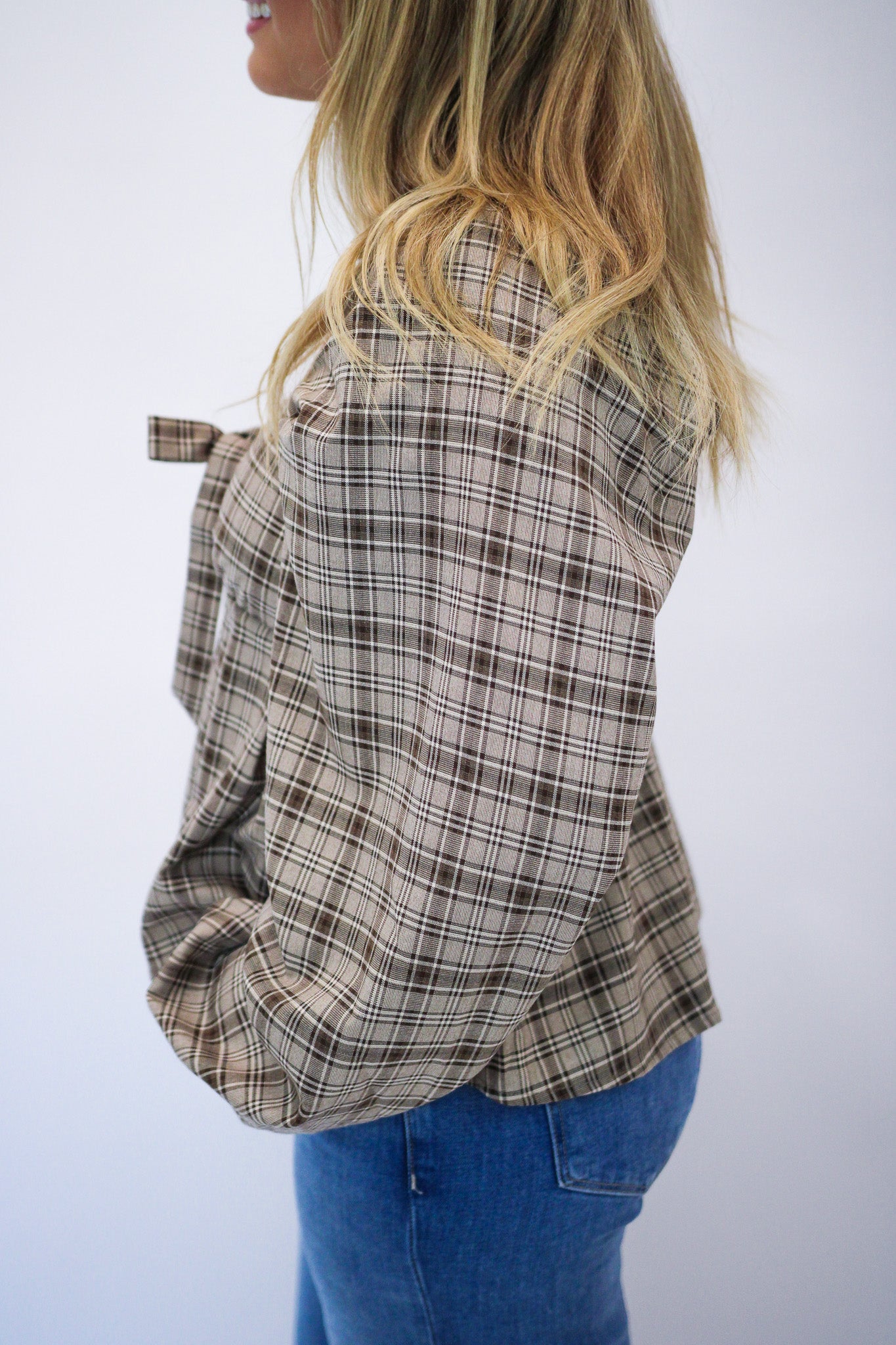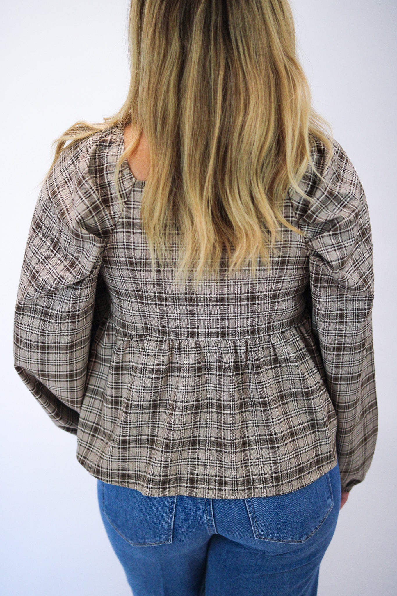 The Dream A Little Top in brown is your new go-to for effortless charm. This plaid babydoll blouse features playful balloon sleeves and a flirty V-neckline, tied together with a sweet center front bow. Its flowy, pleated design and gathered waist create a comfy, easy fit that’s perfect for adding a touch of preppy cool to any outfit.