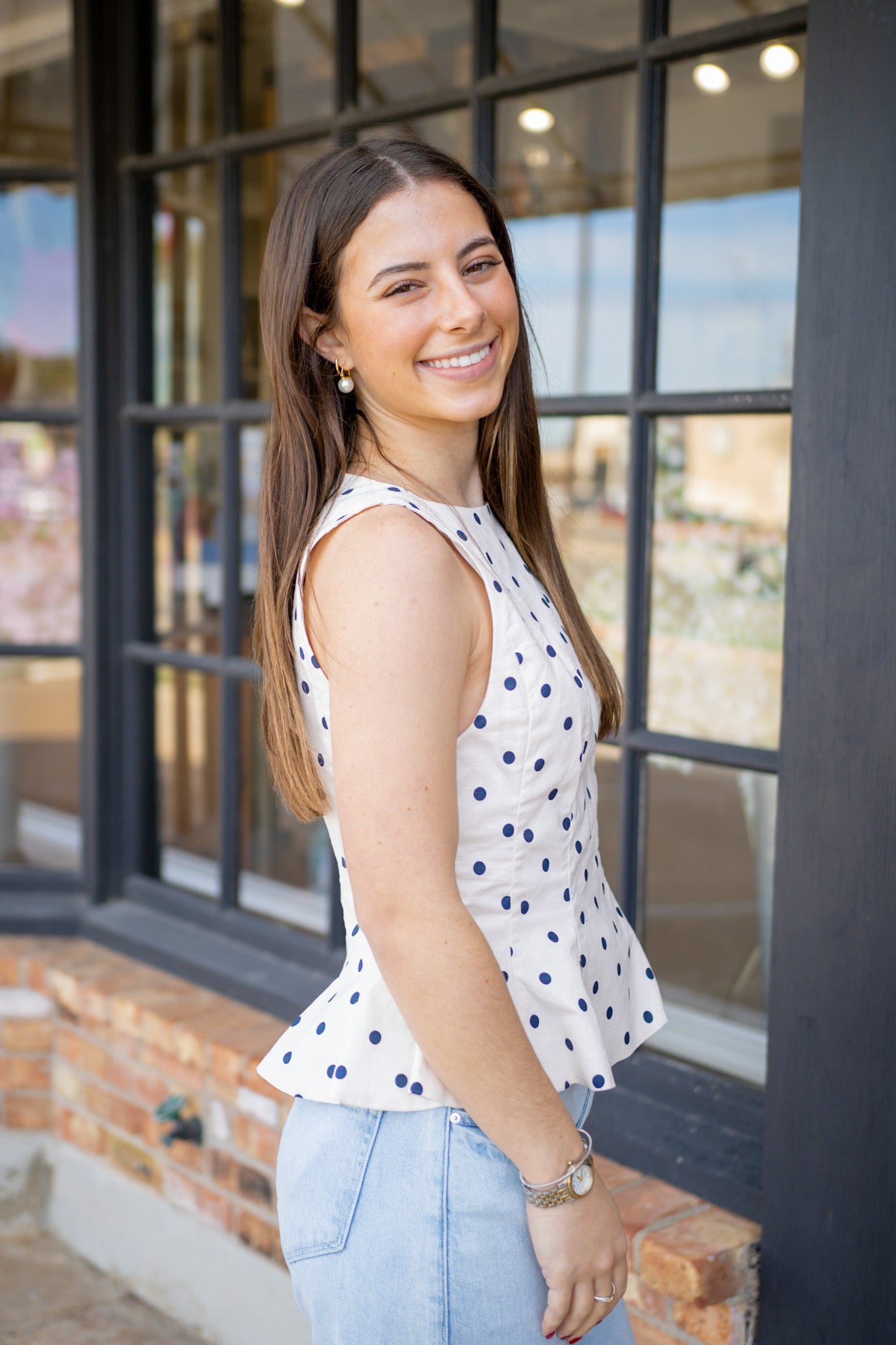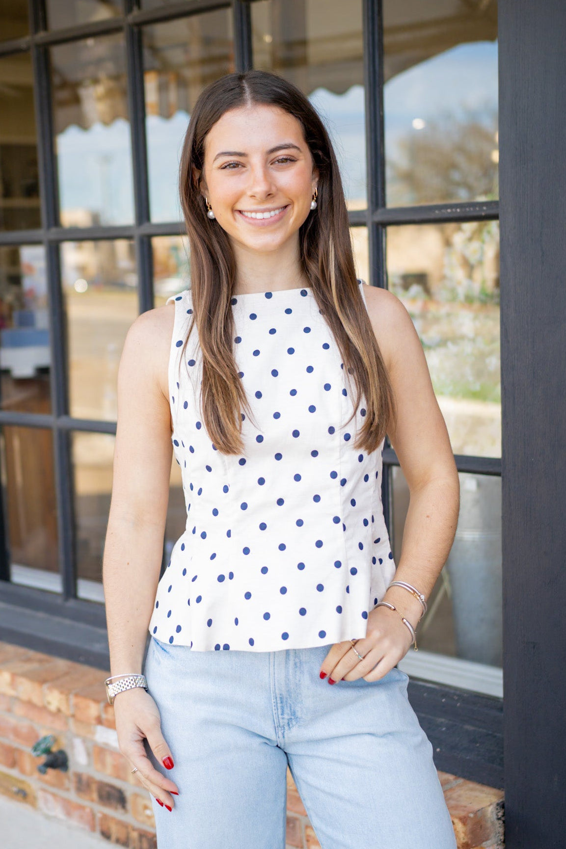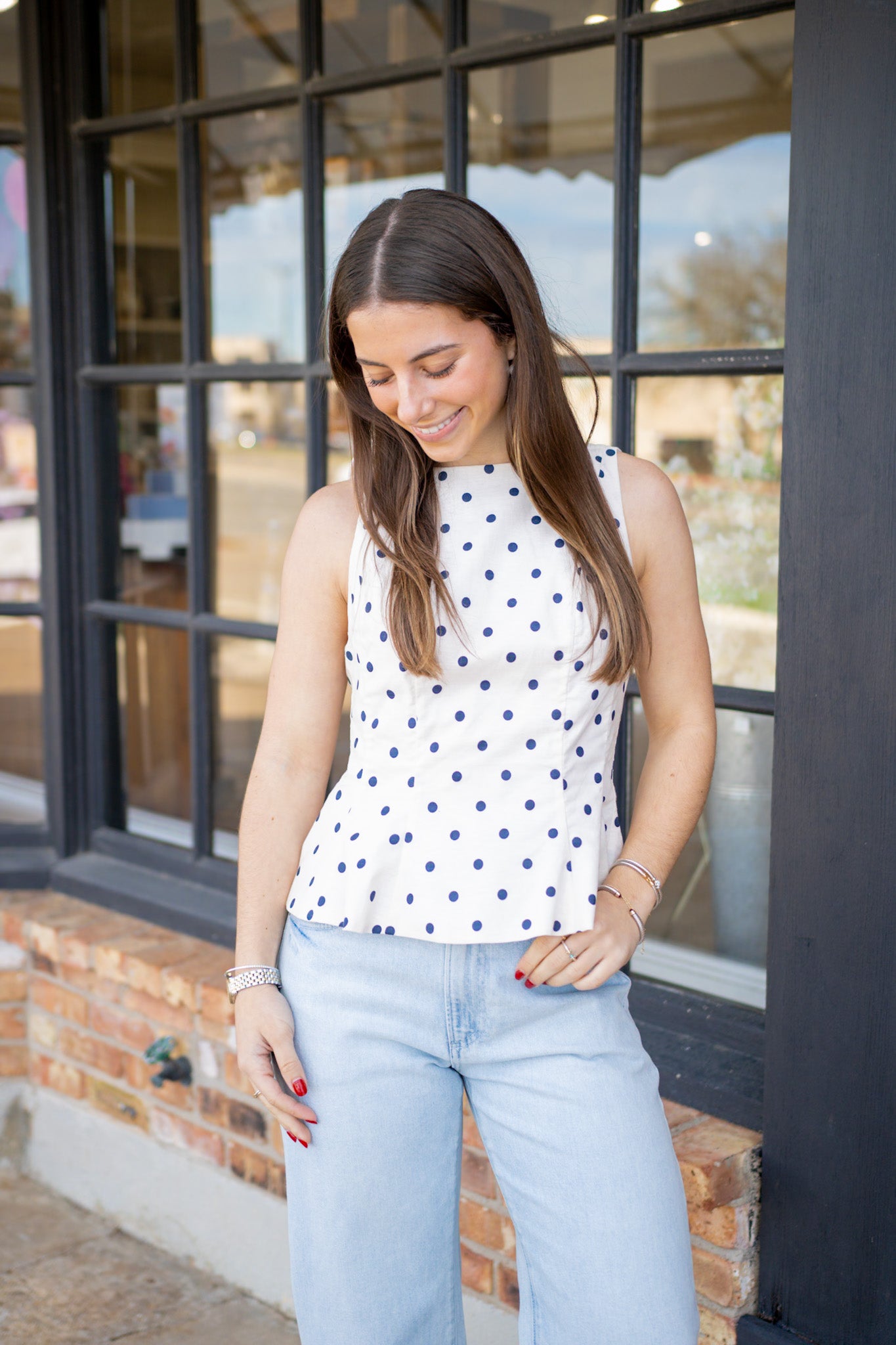 Milk & Cookies Polka Dot Top, Navy/Cream
