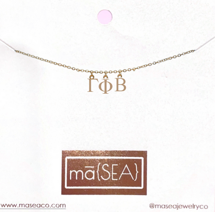 Go Greek with mā{SEA} Jewelry Co.! Throw what you know and represent your sorority letters with our Greek dangle letter necklaces!