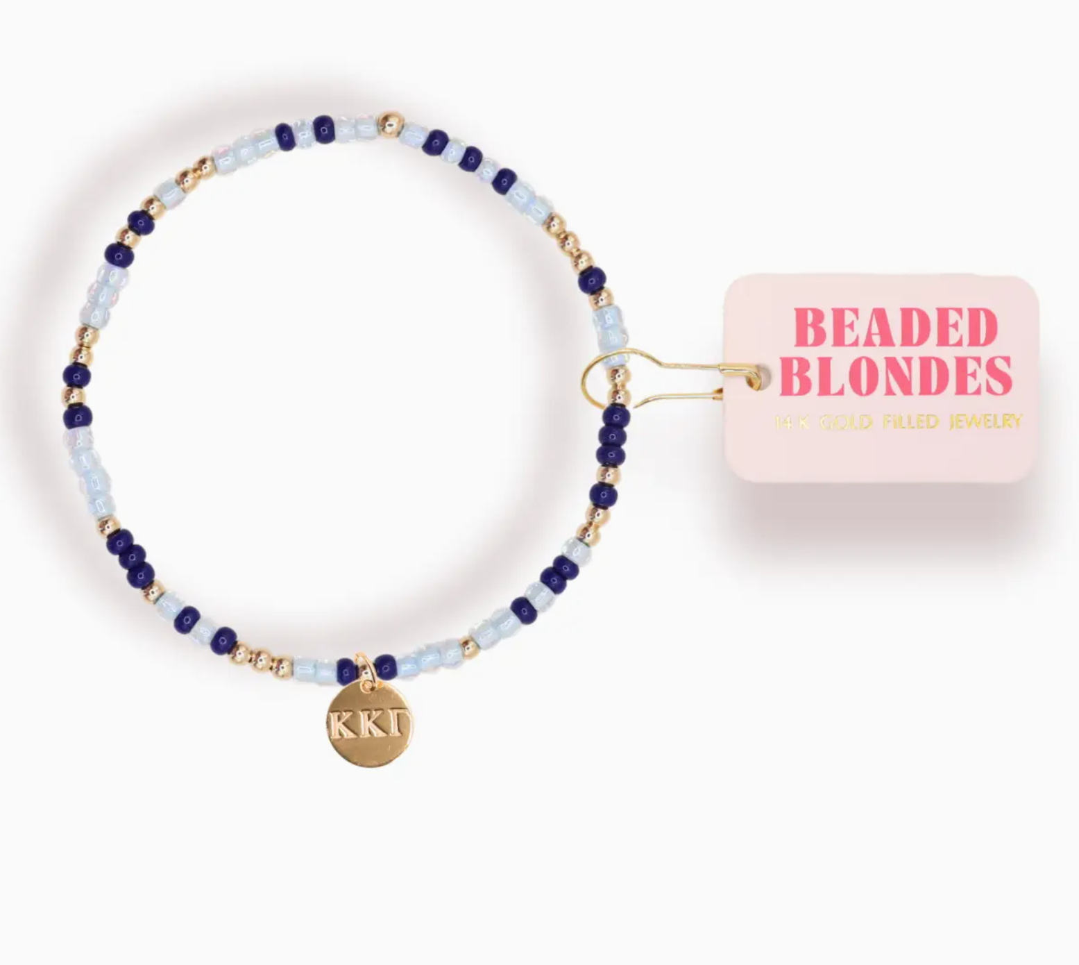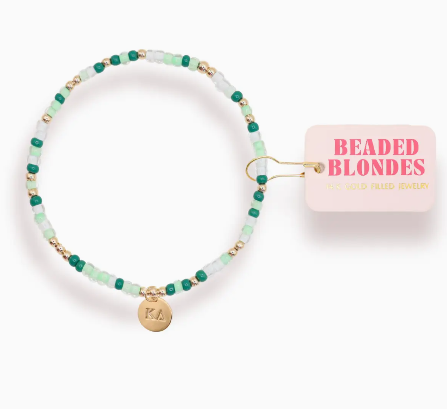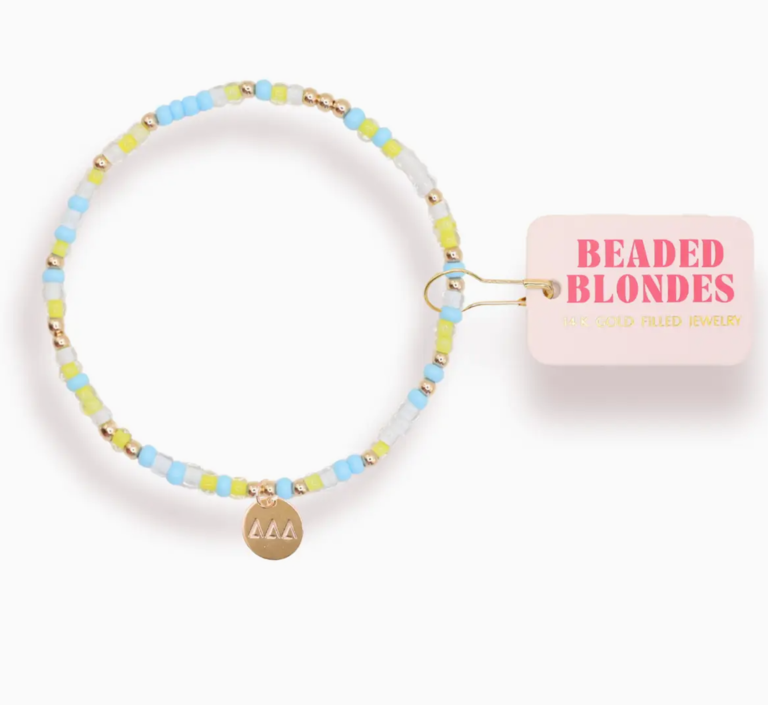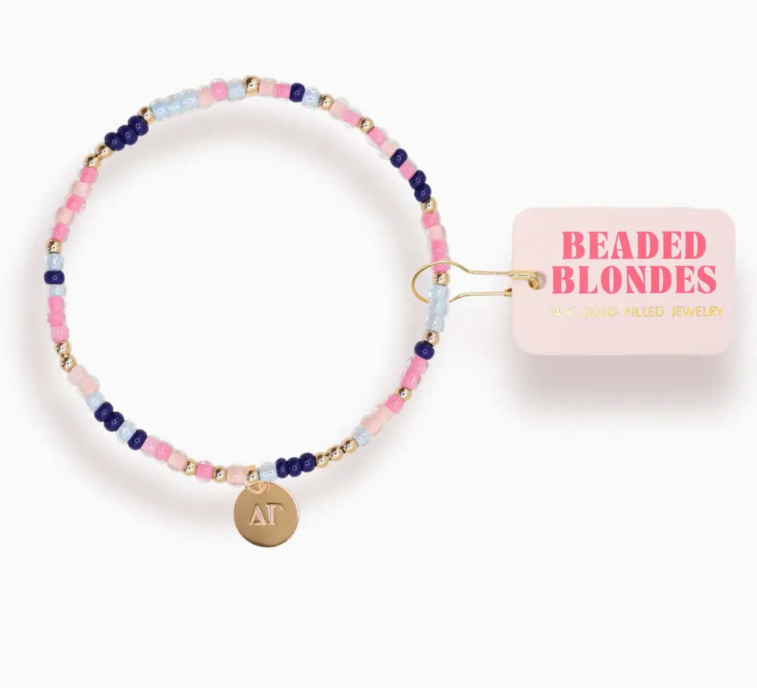 - 2MM gold stackable beaded bracelet with sorority charm.