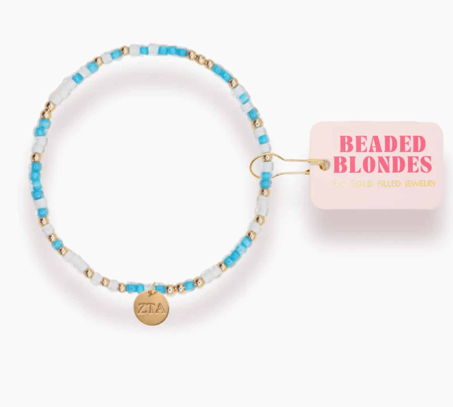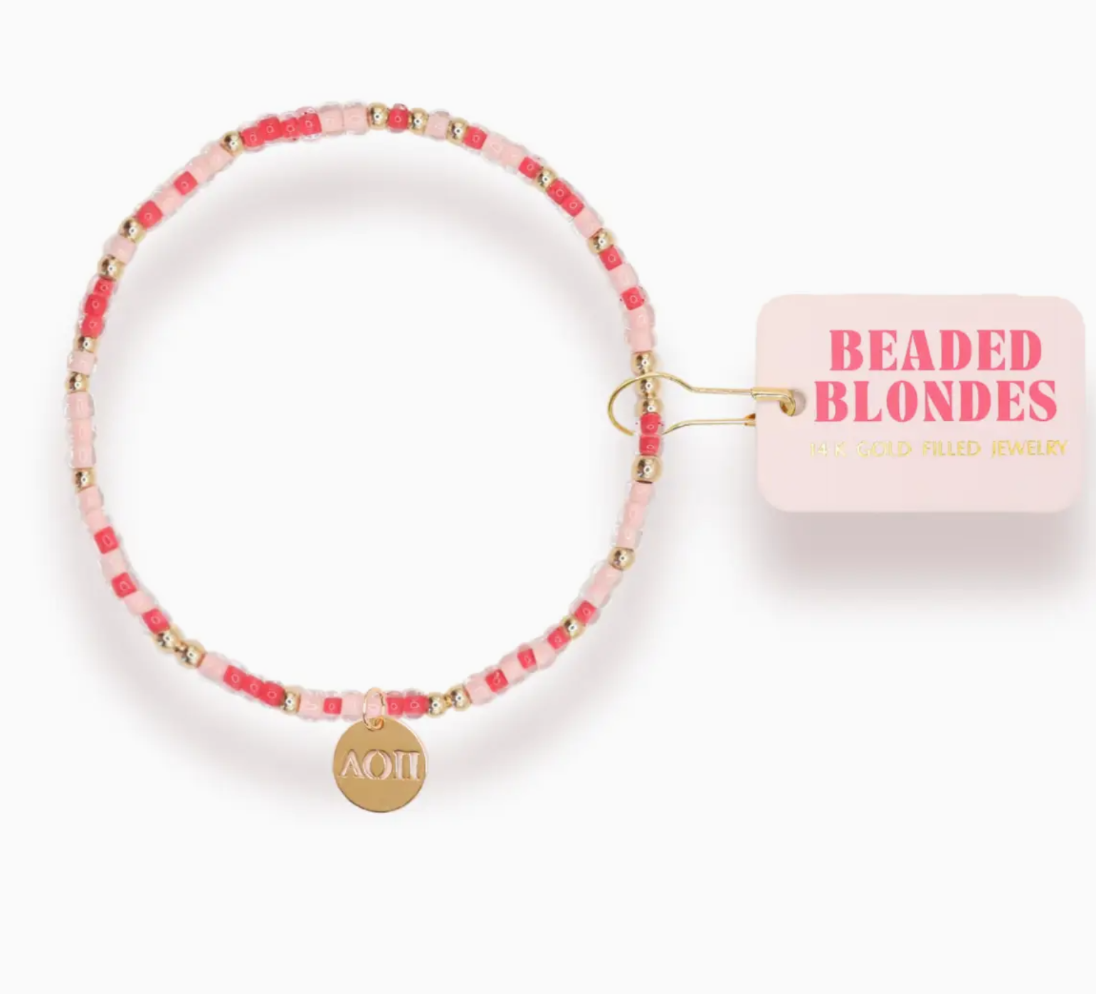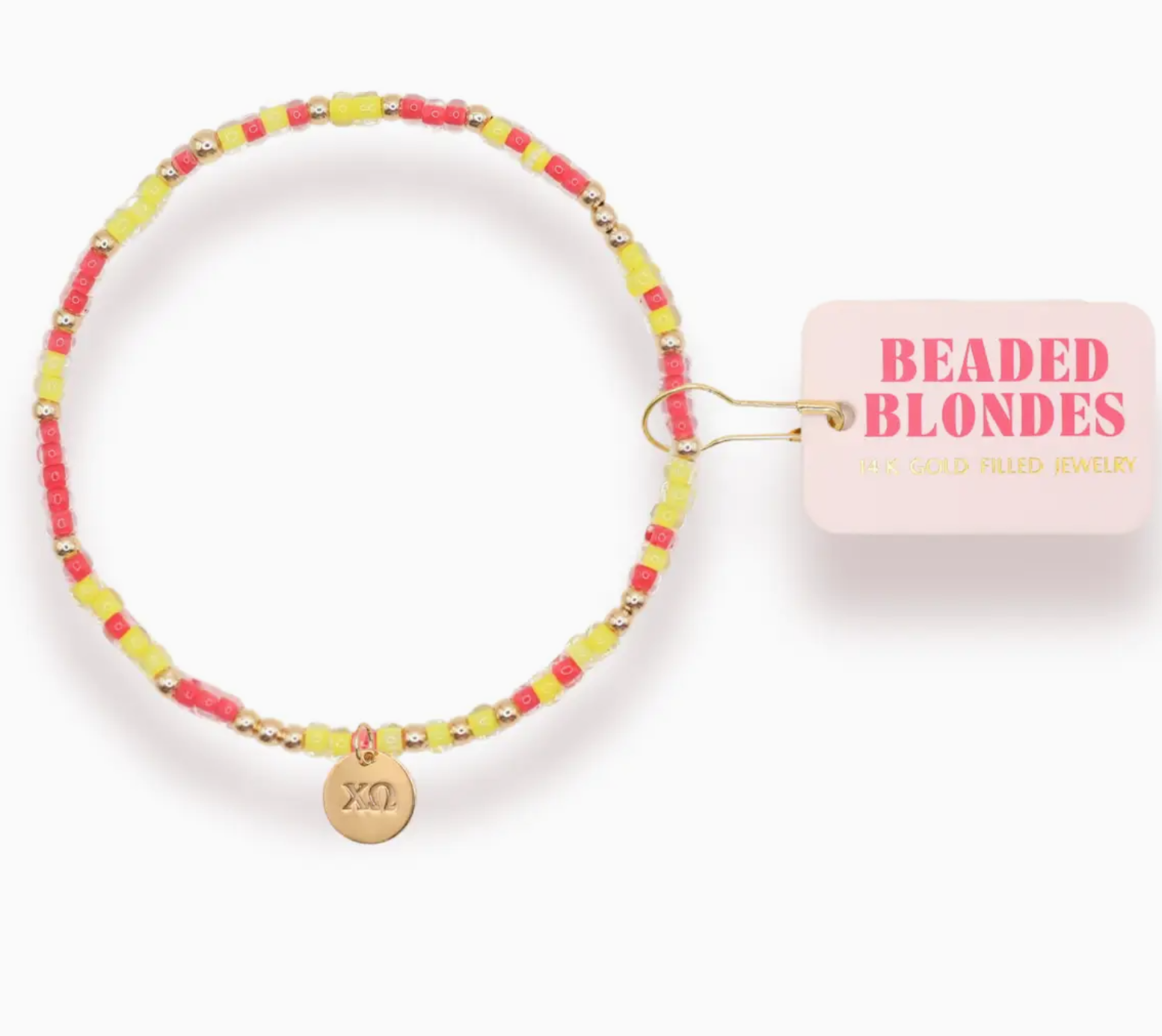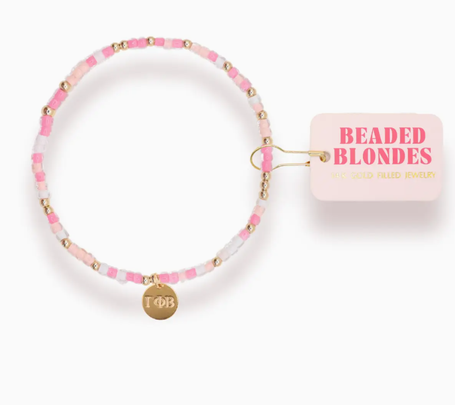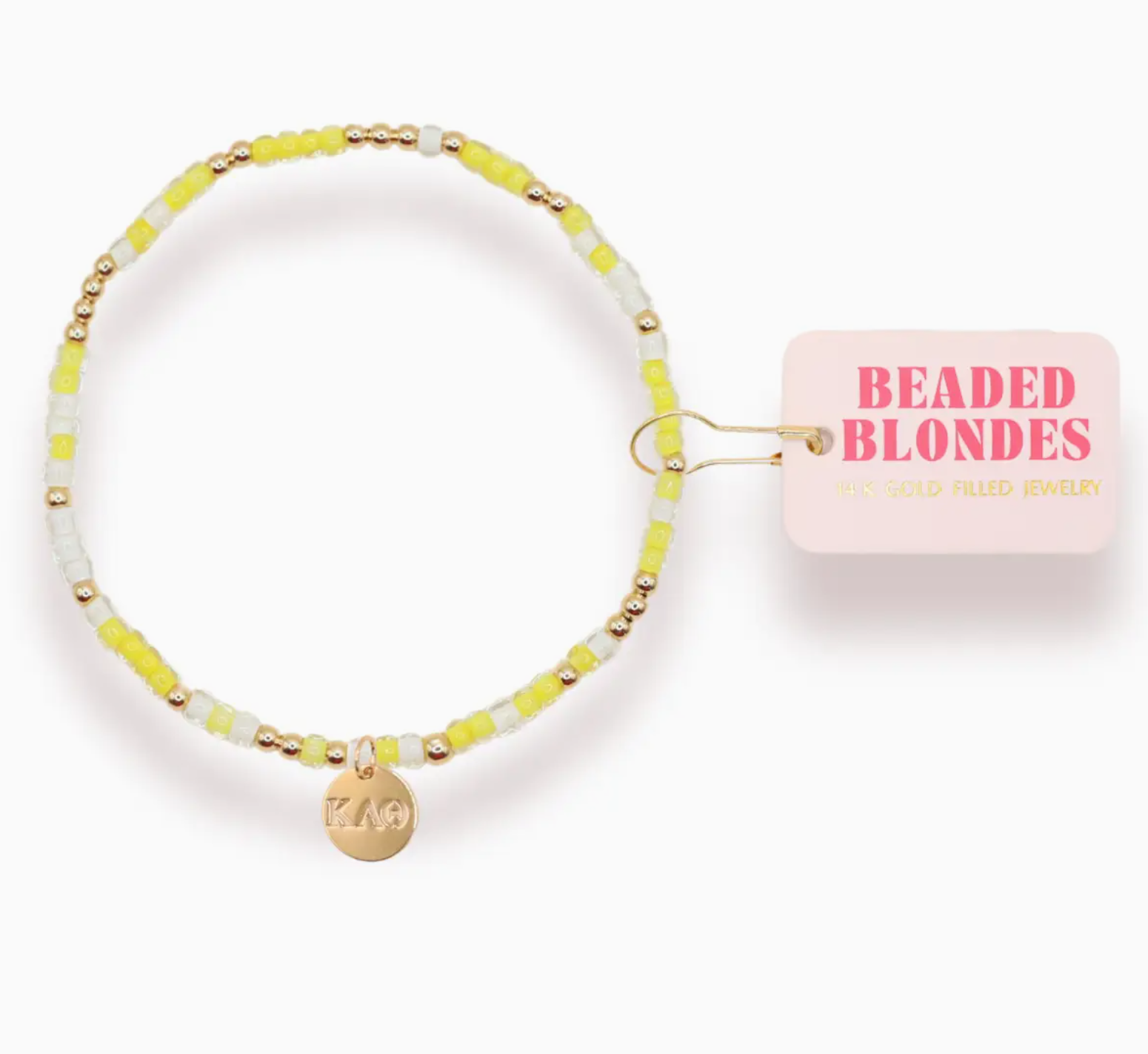 - 2MM gold stackable beaded bracelet with sorority charm.