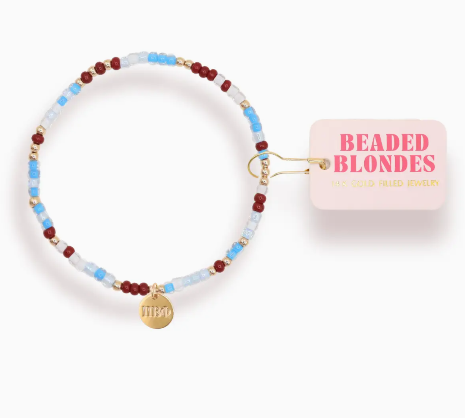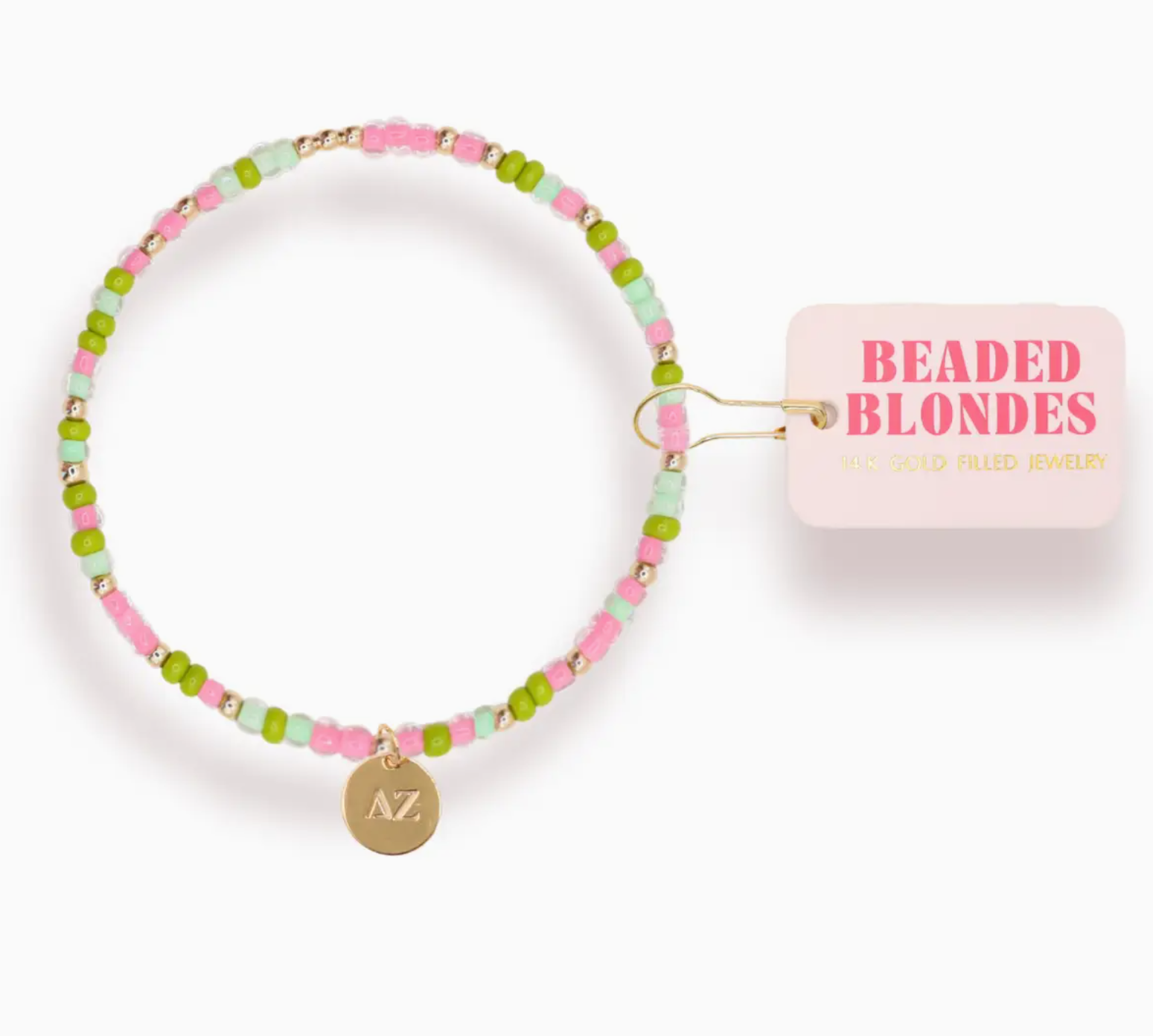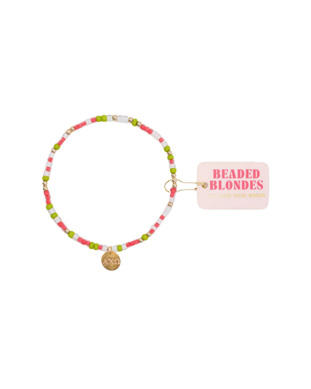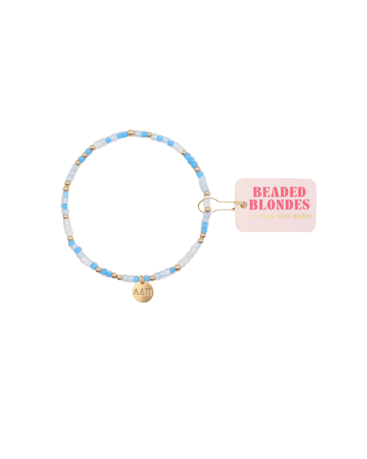- 2MM gold stackable beaded bracelet with sorority charm.