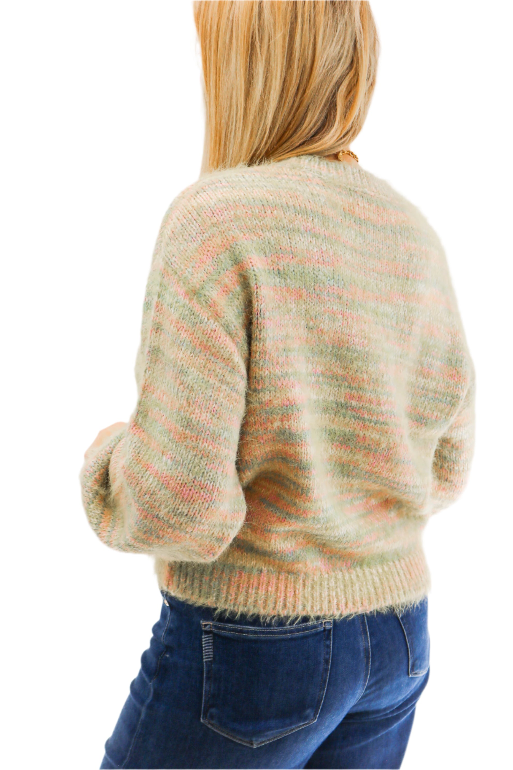 Stay cozy and colorful in our Colette Multi Color Striped Sweater. This fuzzy sweater features a playful mix of colors, perfect for adding a fun touch to any outfit. Stay warm and stylish all winter long!