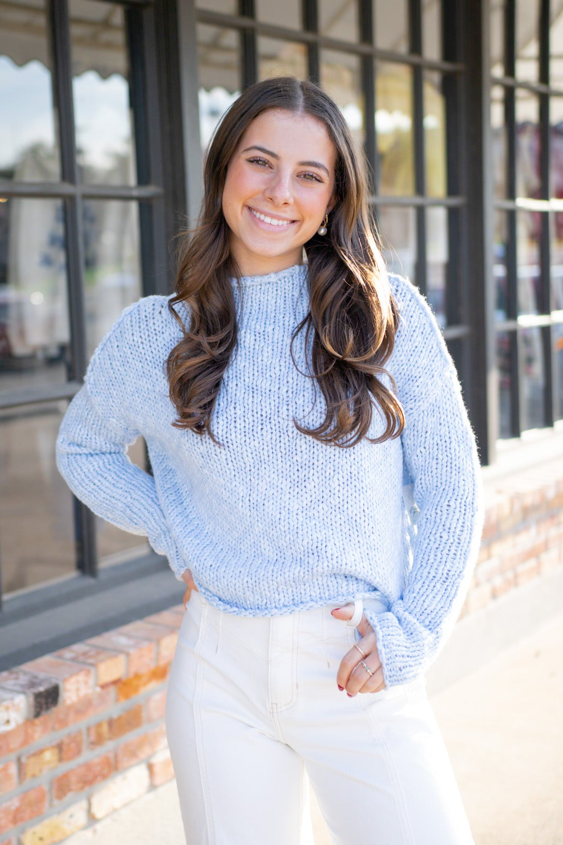 Opal Rollneck Knit Sweater, Cashmere Blue