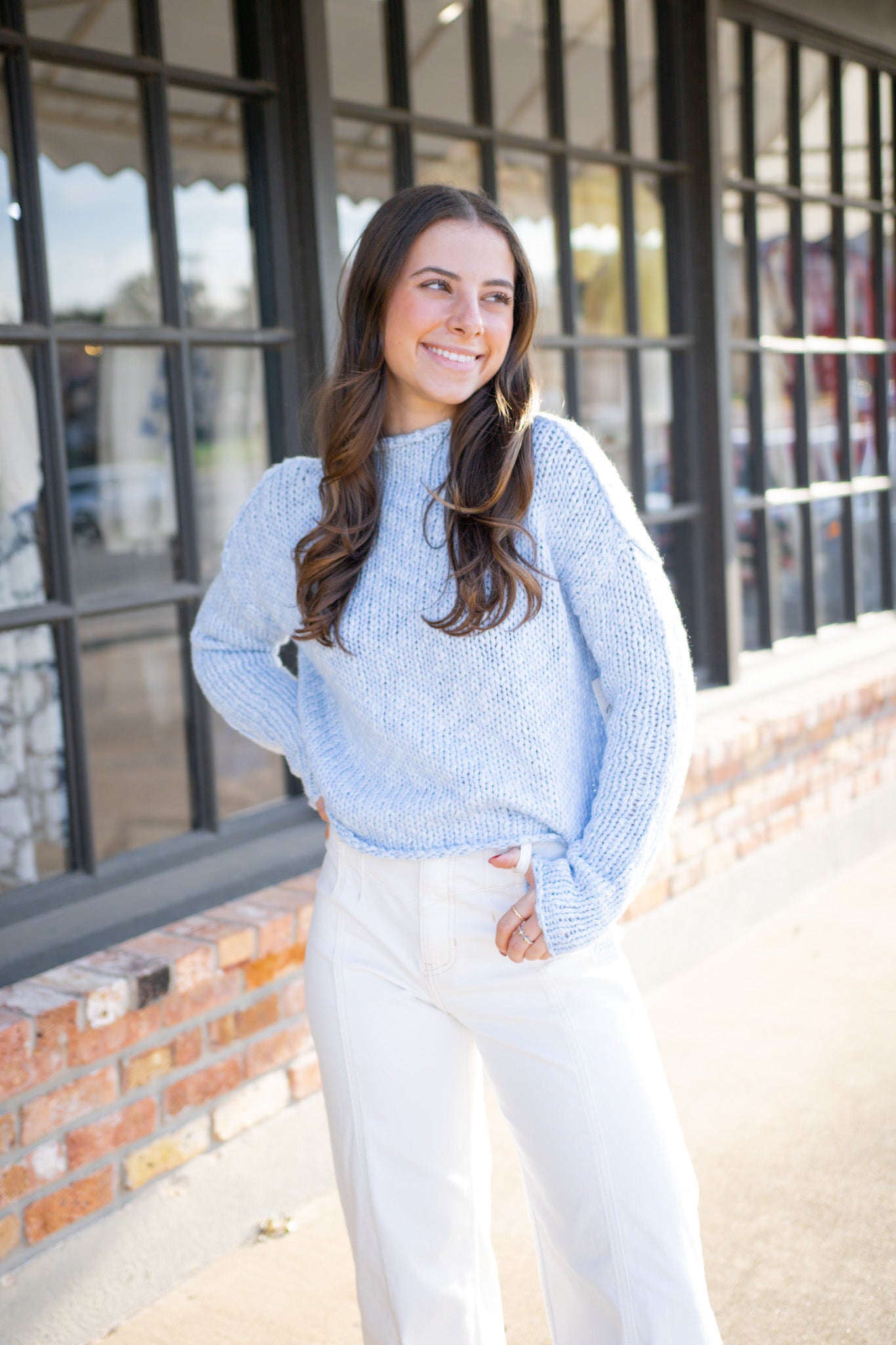 So light and perfect for any-season layering, this staple sweater is featured in an airy cotton knit with a rolled neckline and dropped shoulders for that laidback look.