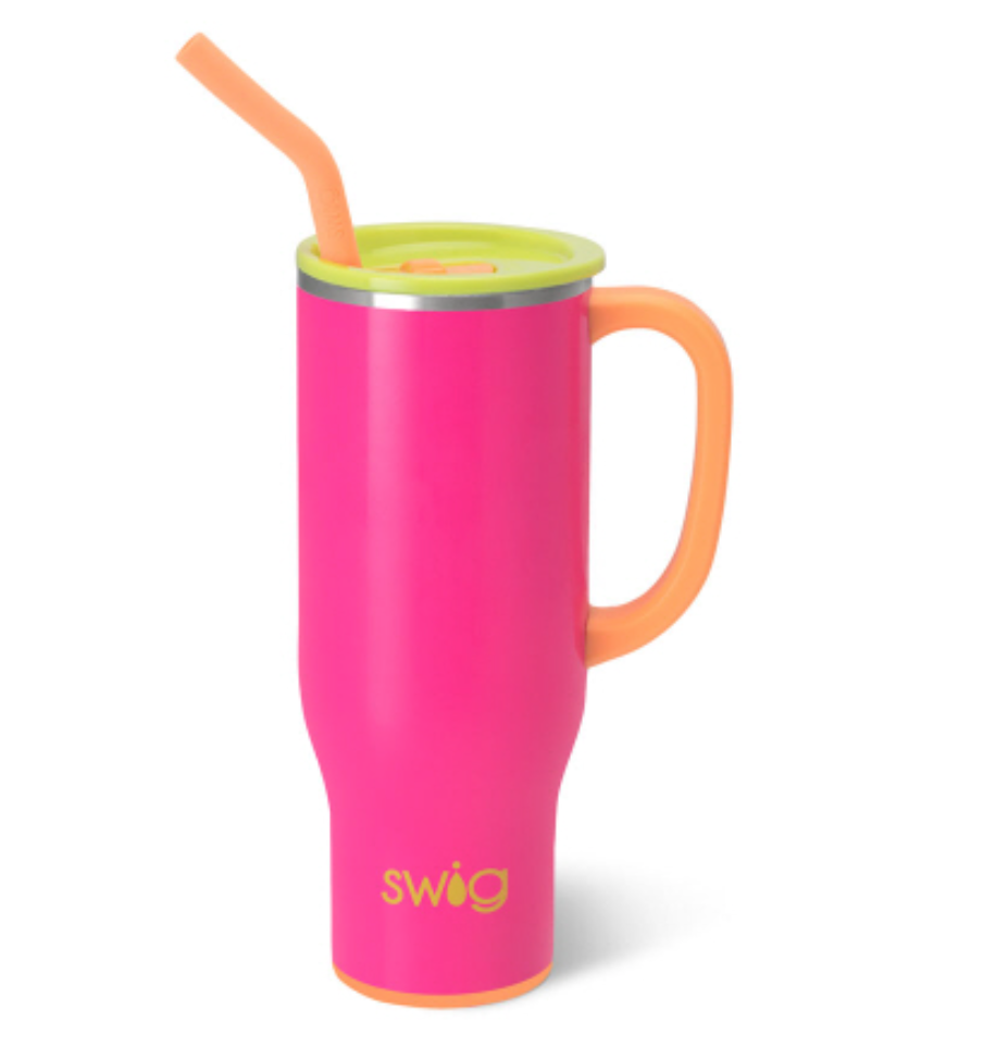You asked, we listened! Grab our fan-fave Mega Mug in a smaller, 30oz size. A cup holder-friendly frame, a comfort-grip handle, and a plastic straw with a silicone flexi-tip make hydrating easier than ever.