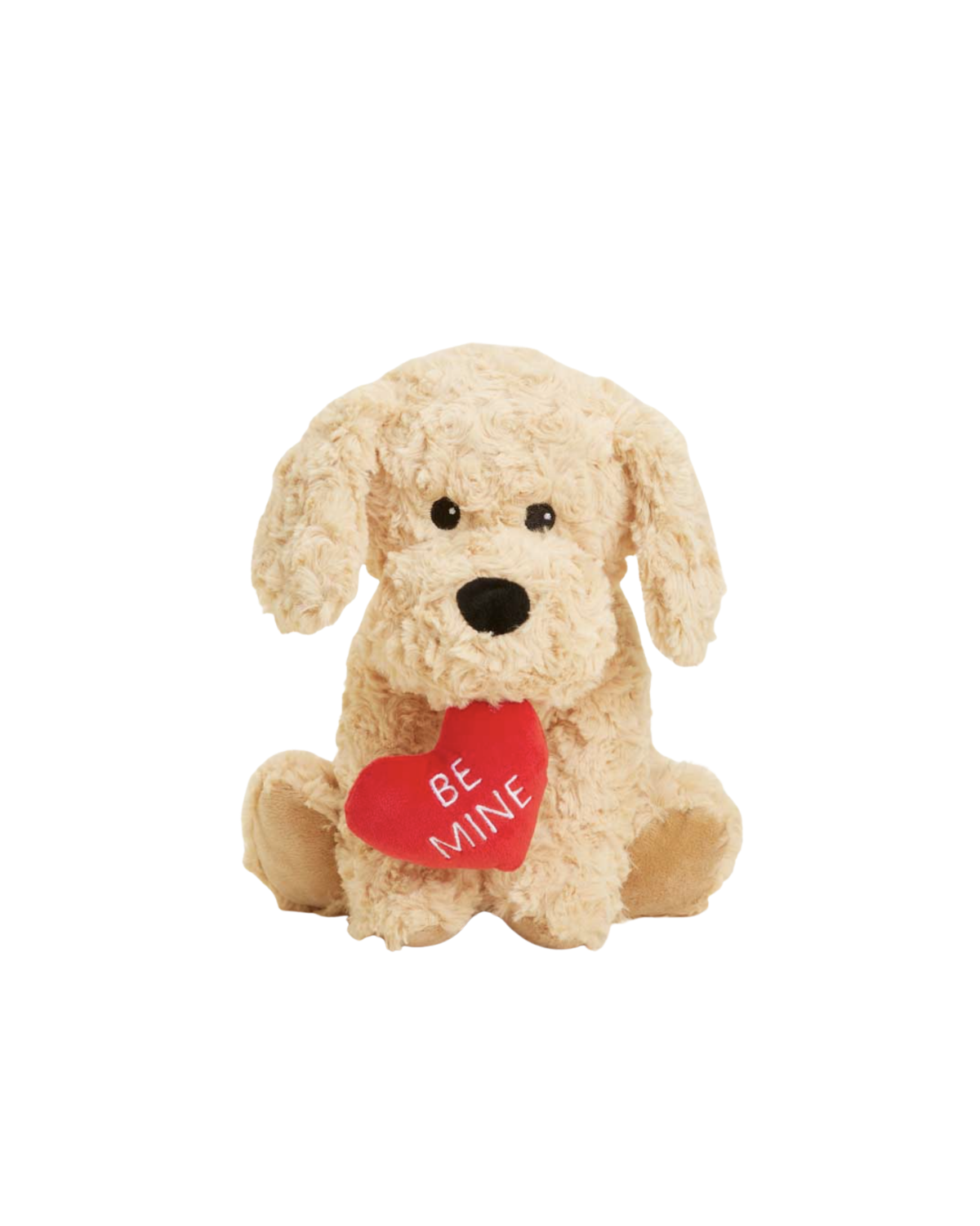 Golden Dog Warmies is a loyal cuddle buddy that's now sweeter than ever with a red heart in its mouth that says Be Mine.