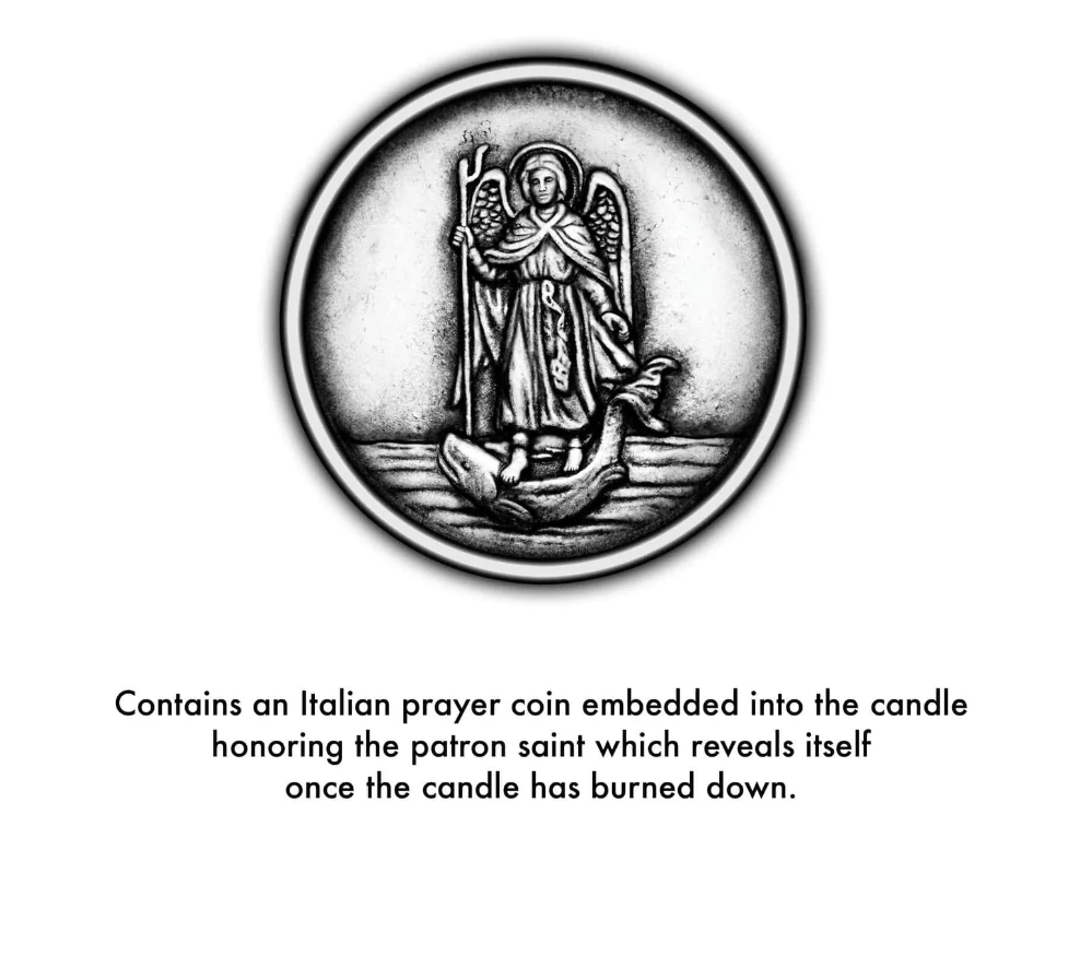 Each candle comes with a prayer to the patron saint, holy oil as part of the wax, and a prayer coin embedded into the candle. Before the first lighting, read out loud the prayer to the patron saint, then light the candle. Once the wax has burned all the way down after many uses, remove the coin at the bottom and keep it in your wallet, purse, or car - or bury it in your yard as a way of blessing the entire household.