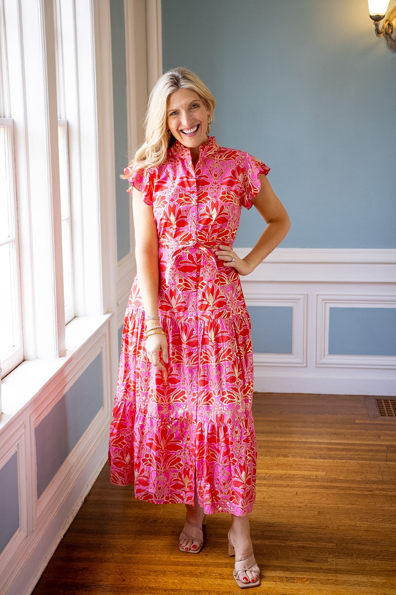 Introducing our stunning new maxi dress, Mirabella! It is destined to be a wardrobe winner with its flattering V-neckline, elegant flutter sleeves, convenient pockets, and complemented by chic belt. Perfect for any occasion, this dress exudes timeless beauty and sophistication.
