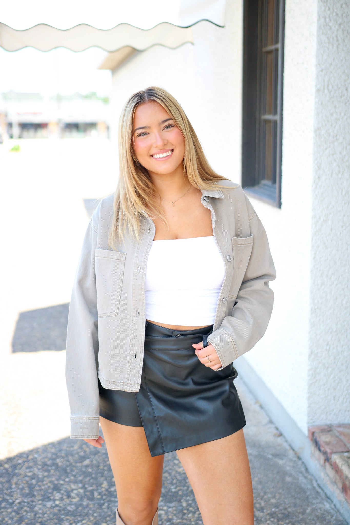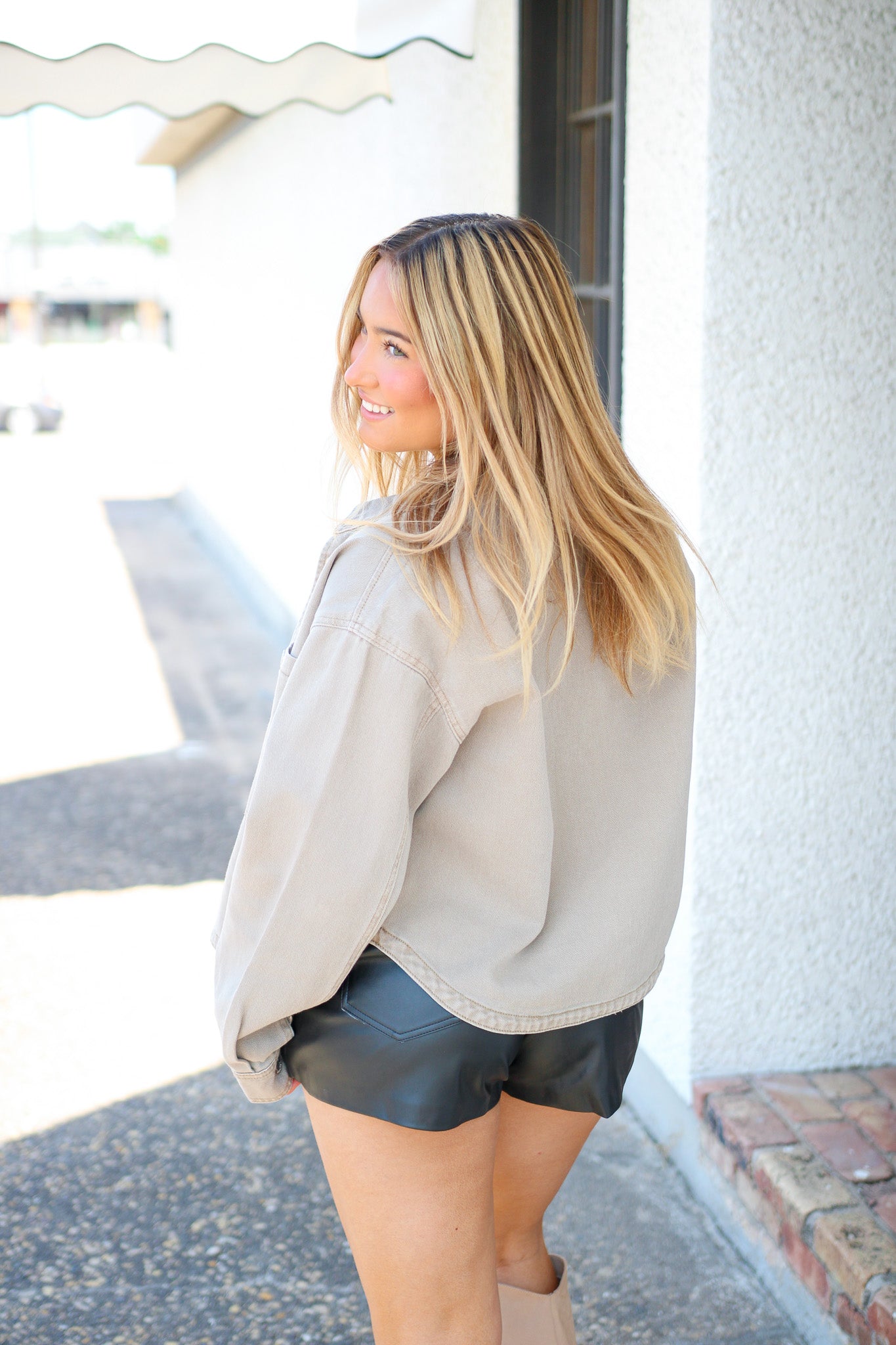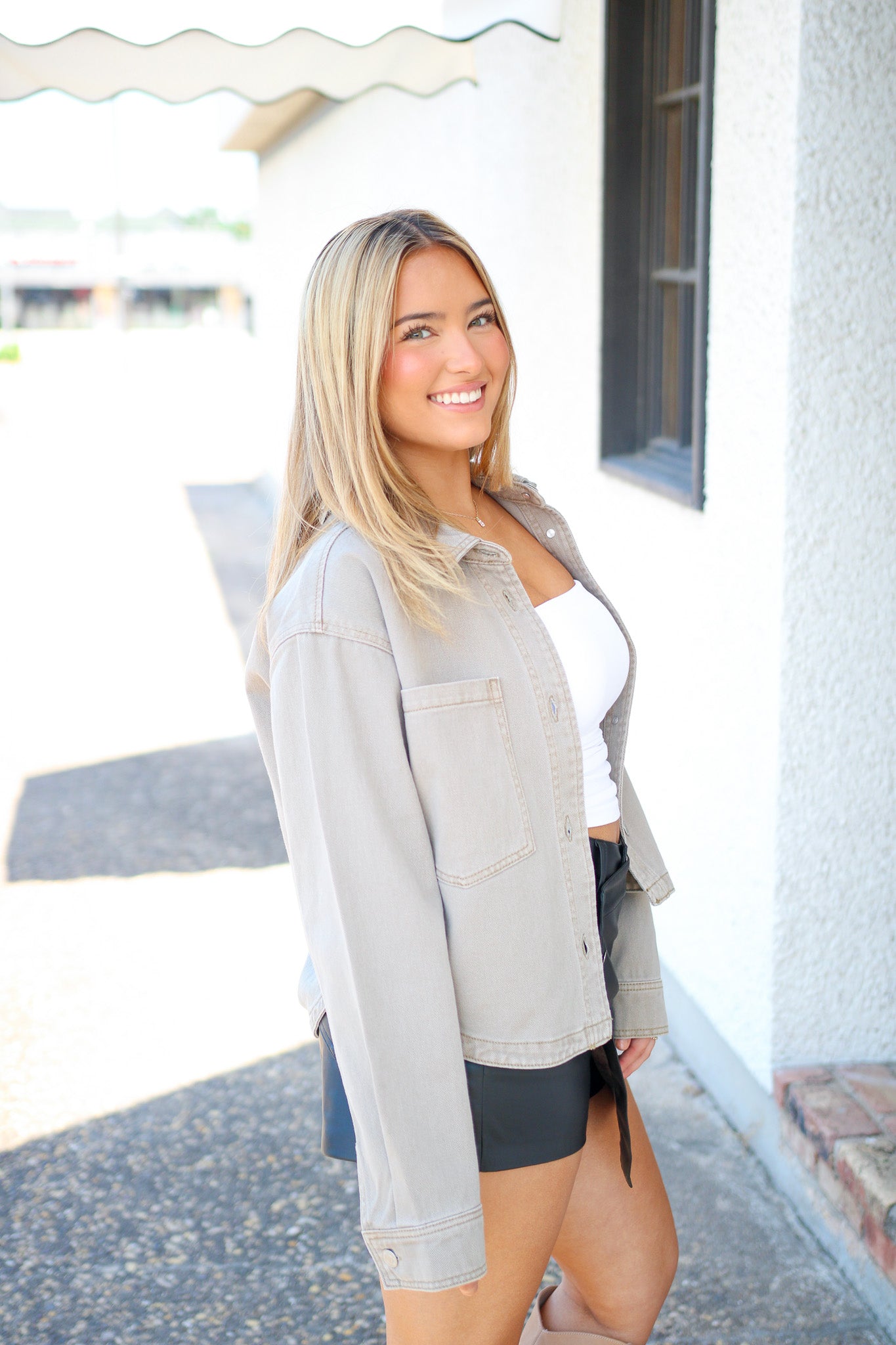Soft and ultra comfortable, the All Day Cropped Denim Jacket is sure to become an everyday part of your wardrobe. Made using our new 100% cotton non-stretch denim, this relaxed jacket features metal buttons, a collared design, large front pockets, and a curved hem for a flattering look.