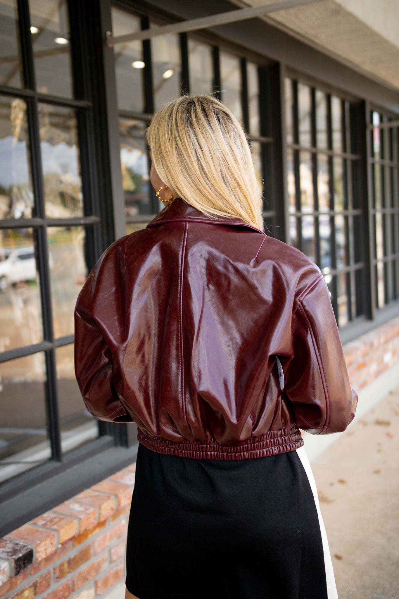 Elevate your style with the Beauvoir Bomber Jacket in Bordeaux! This faux vinyl leather jacket catches the light with its shiny texture, adding a touch of bold flair to any outfit. Featuring handy side pockets and a sleek hidden front zipper, it’s designed for effortless cool and practicality. Crafted from durable, eco-friendly materials, it’s a jacket you can feel good about wearing—and showing off. Perfect for those who love to stand out with a playful edge!