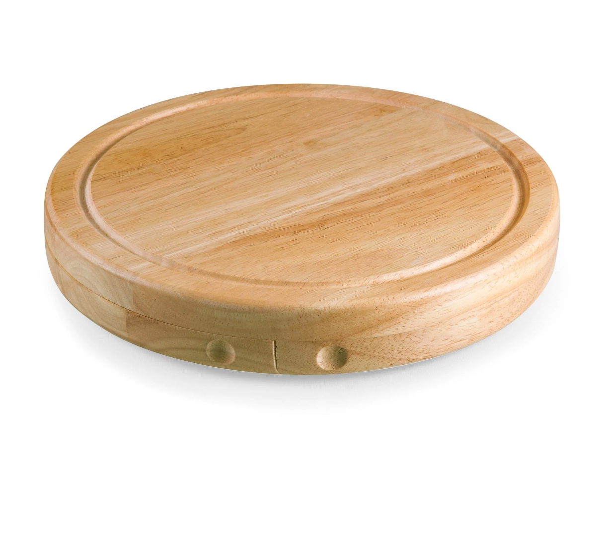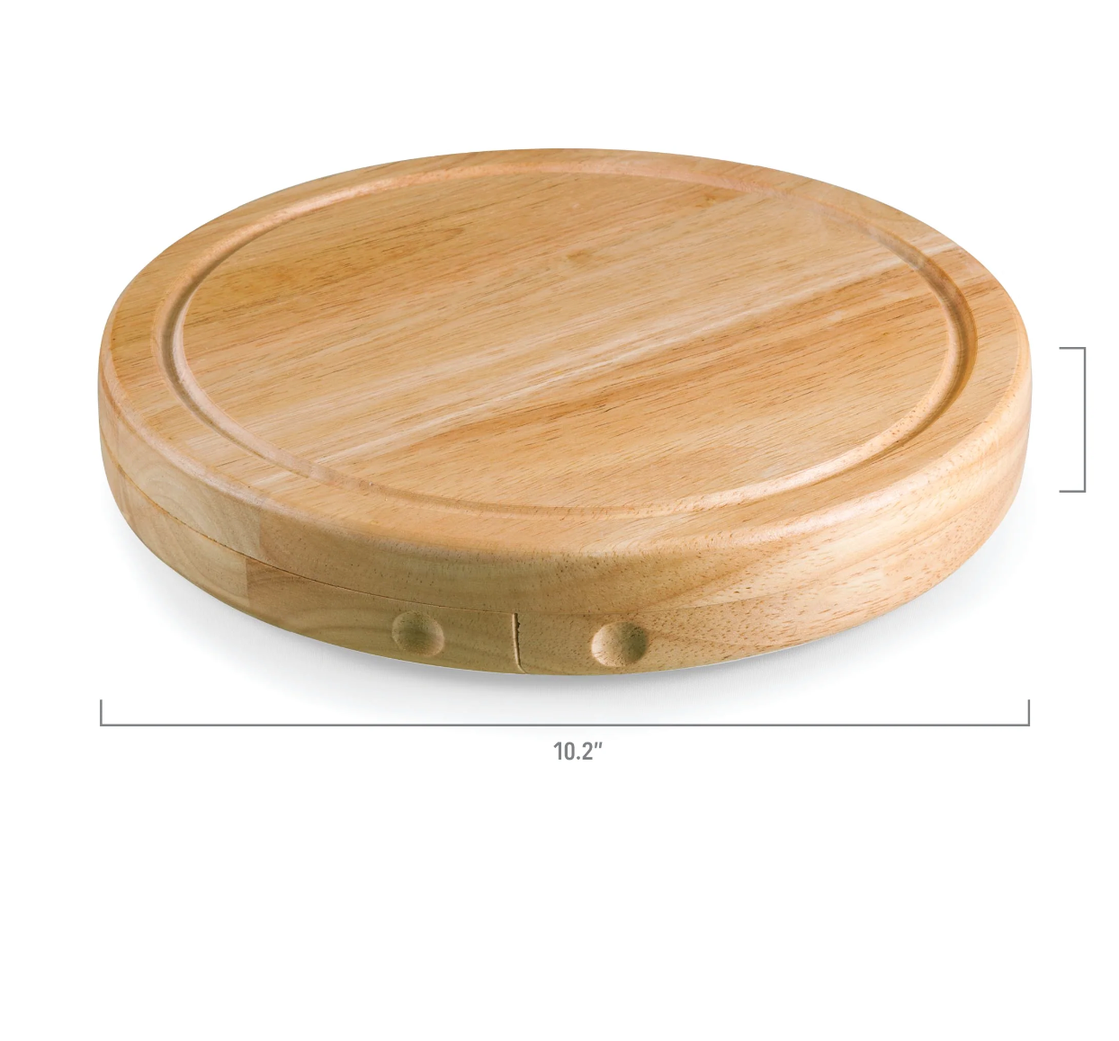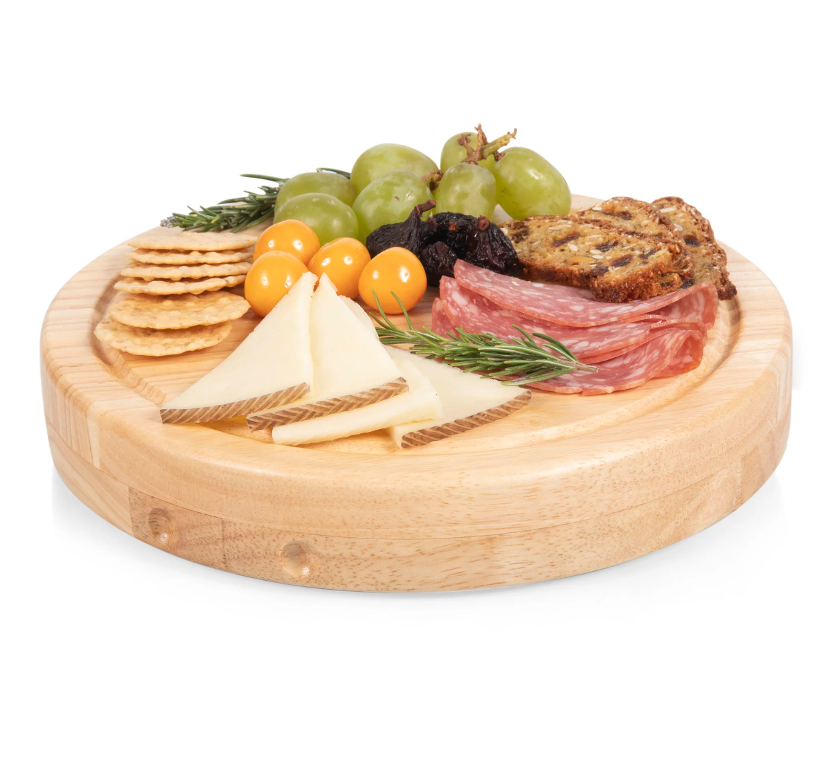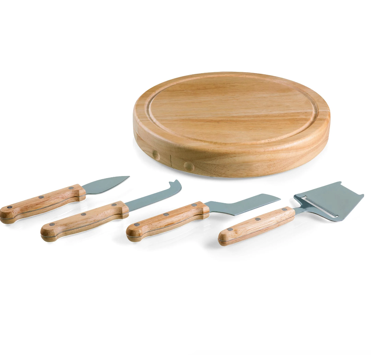 The Circo Cheese Board and Knife Set makes brilliant and attractive use of limited space with a split-level wood cutting/charcuterie board and interior cheese set.