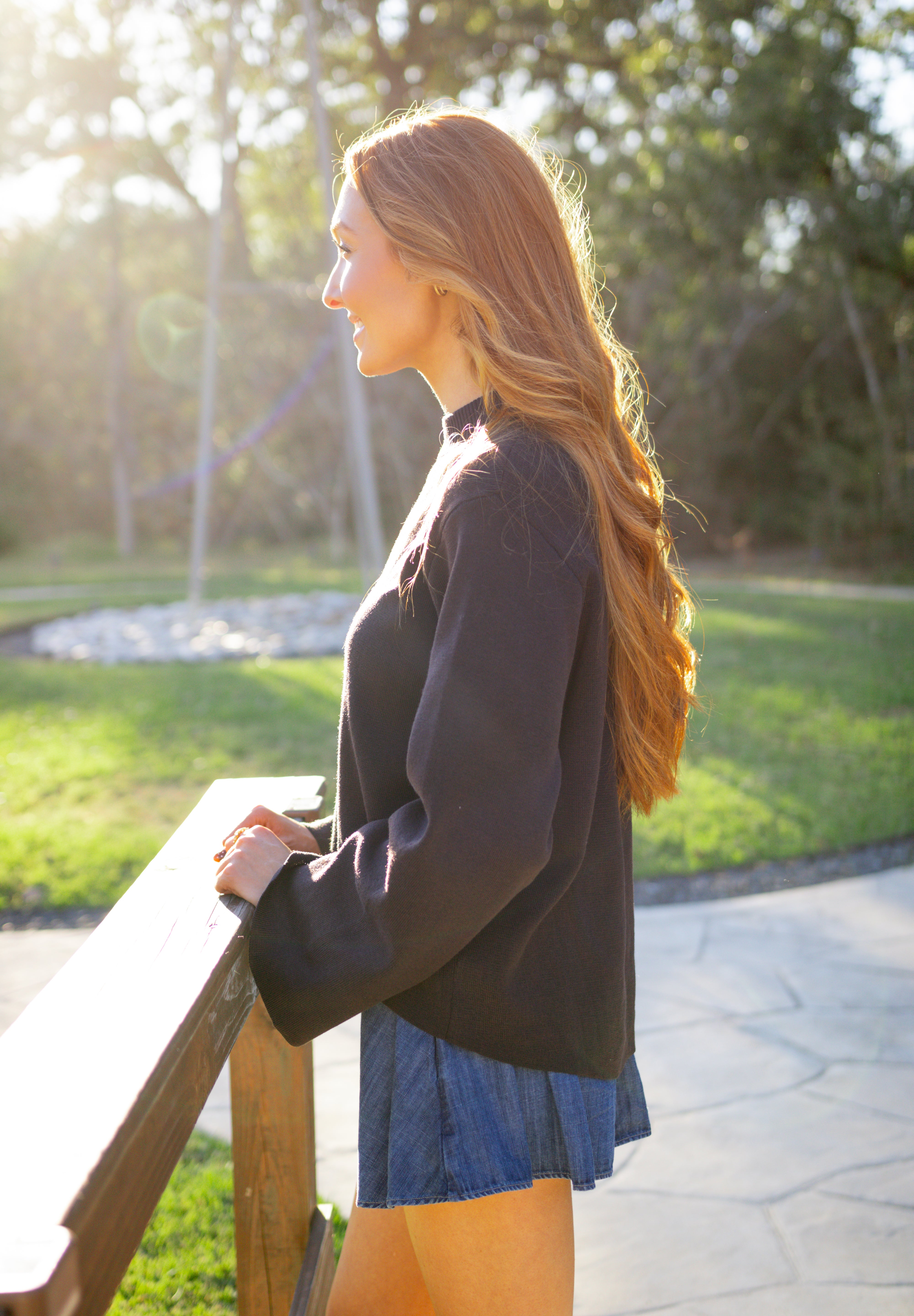 This cozy black long-sleeve sweater is your new go-to for effortless style. Whether you're dressing it up for a night out or keeping it casual for everyday adventures, the City Glow Sweater has got you covered. Simple, sleek, and oh-so-comfortable, it’s perfect for adding a little sparkle to your daily routine!