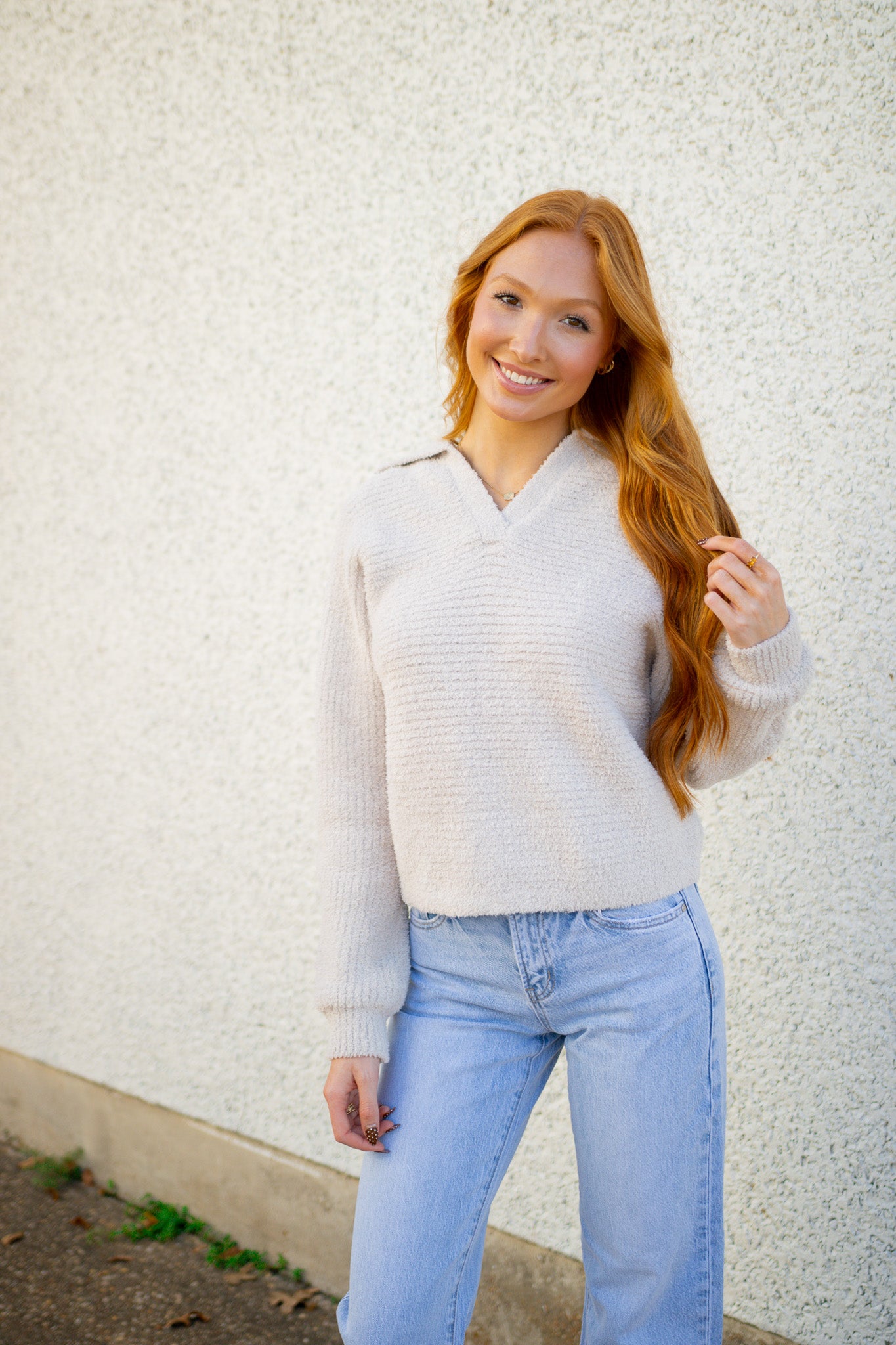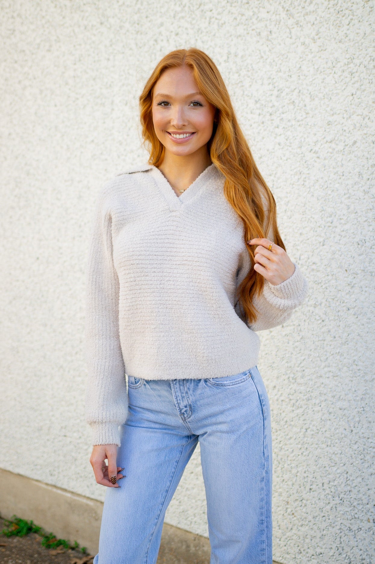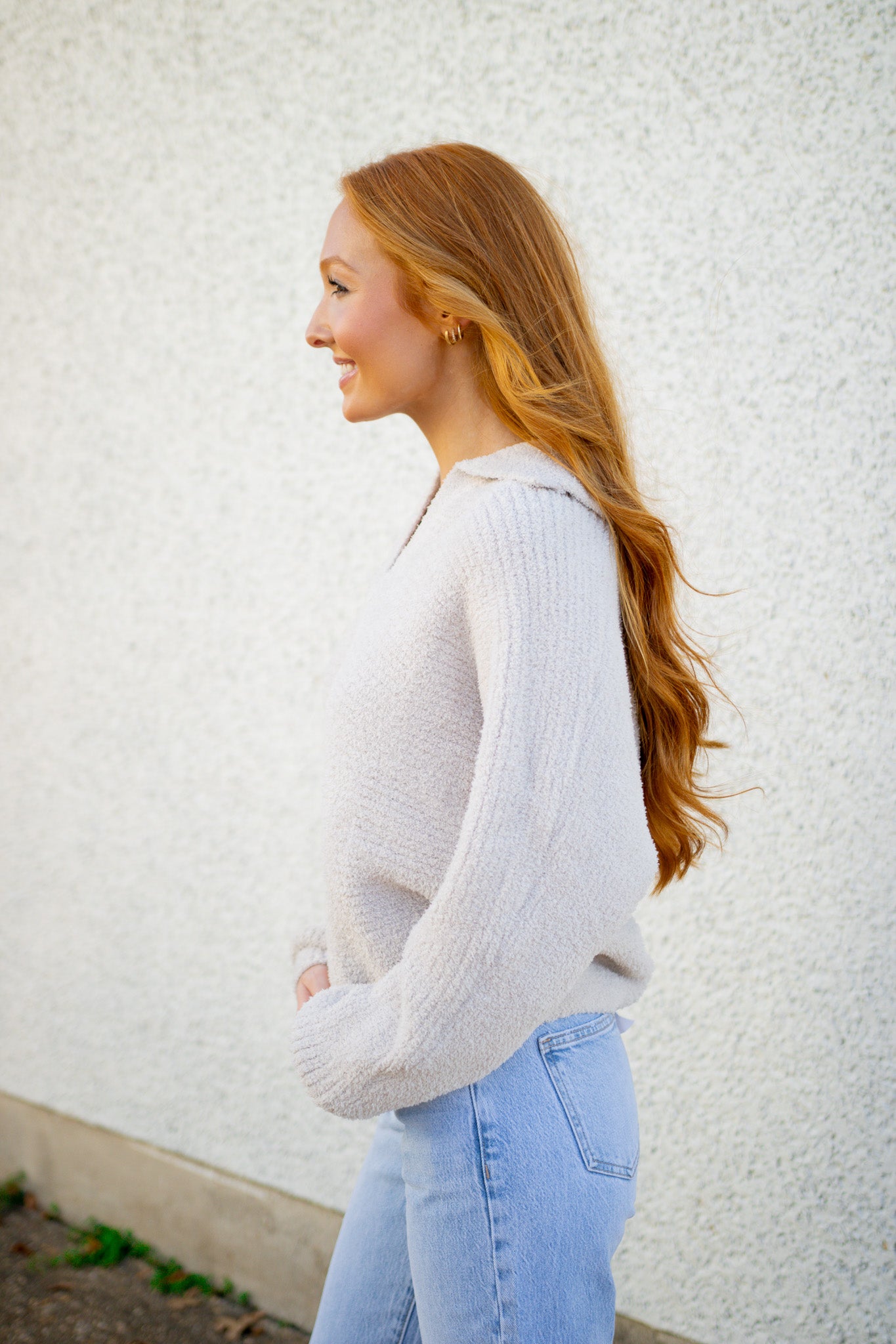 CozyChic® Dolman Sleeve Collared Pullover, Stone