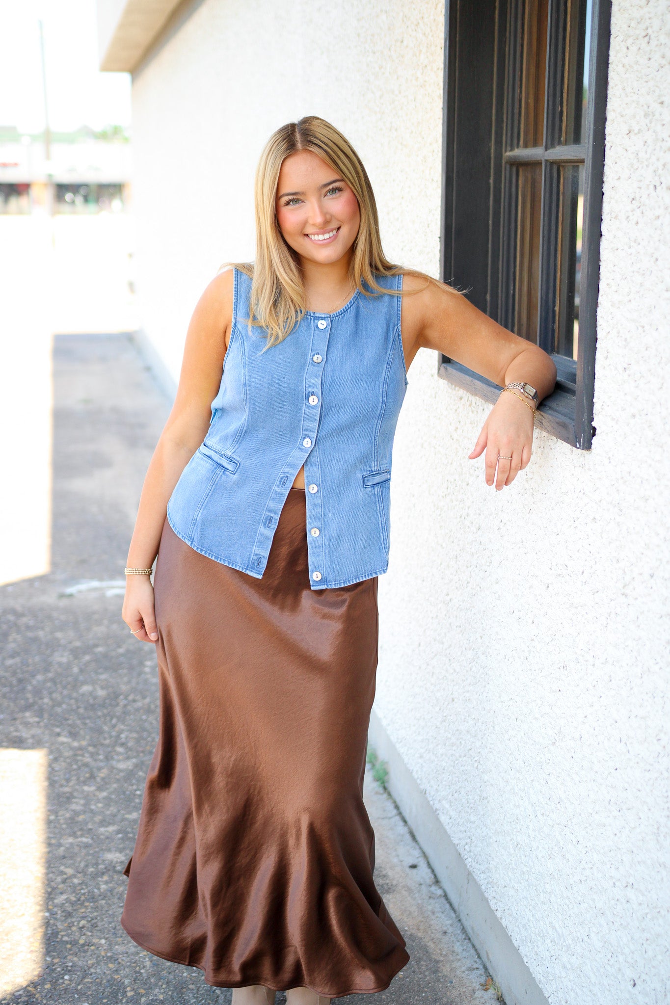 The High Neck Fitted Vest is a modern take on a structured staple, crafted for a clean, tailored look.