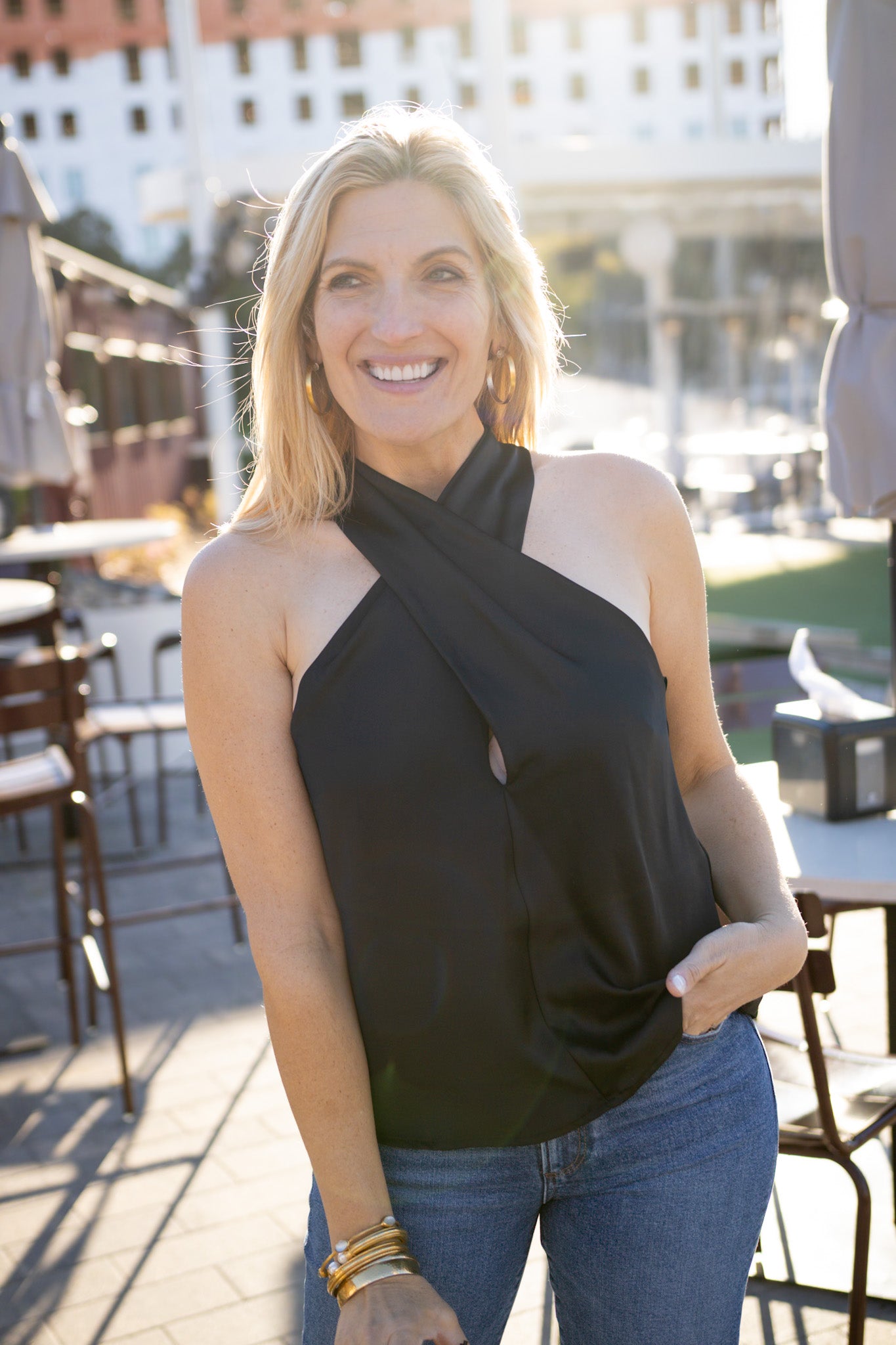 Sophistication wrapped in silk-like drape. The Kennedy Top features a chic halter neckline and a front twist that catches the light just right, creating movement without trying too hard. Crafted from luxurious European charmeuse, this sleeveless wonder glides from dinner reservations to late-night cocktails with understated grace. Pure elegance for those who know that less is always more.