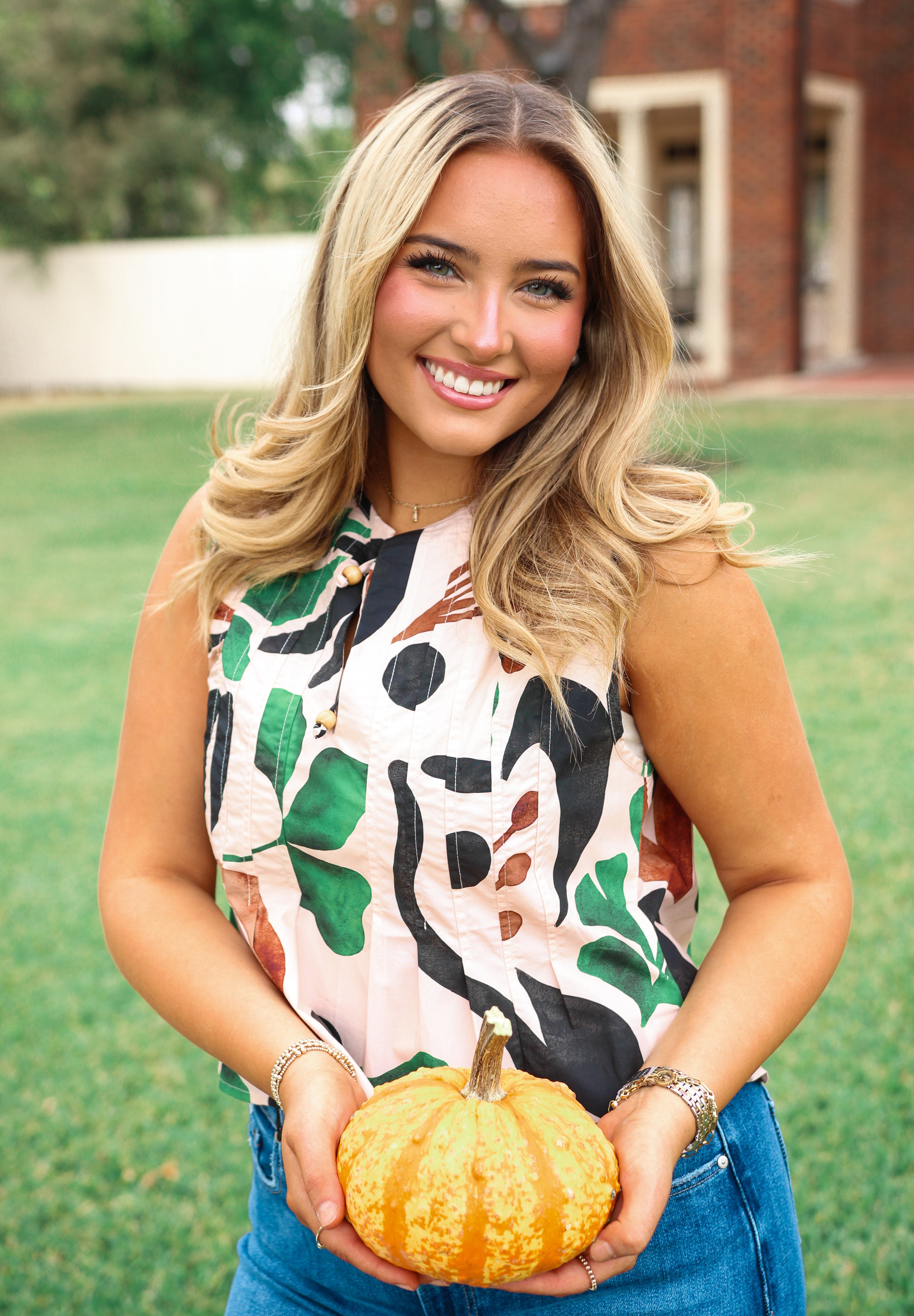 The Koror Top in striking macron is your fall wardrobe's new showstopper. This vibrant statement piece features a bold, eye-catching print paired with a sophisticated high neckline that keeps things polished and put-together. Perfect for those in-between seasons, it transitions effortlessly from summer to autumn while bringing serious personality to every outfit. Wear it solo for maximum impact or pair it with the matching skirt for a coordinated ensemble that turns heads. Either way, you're ready to make a colorful statement.