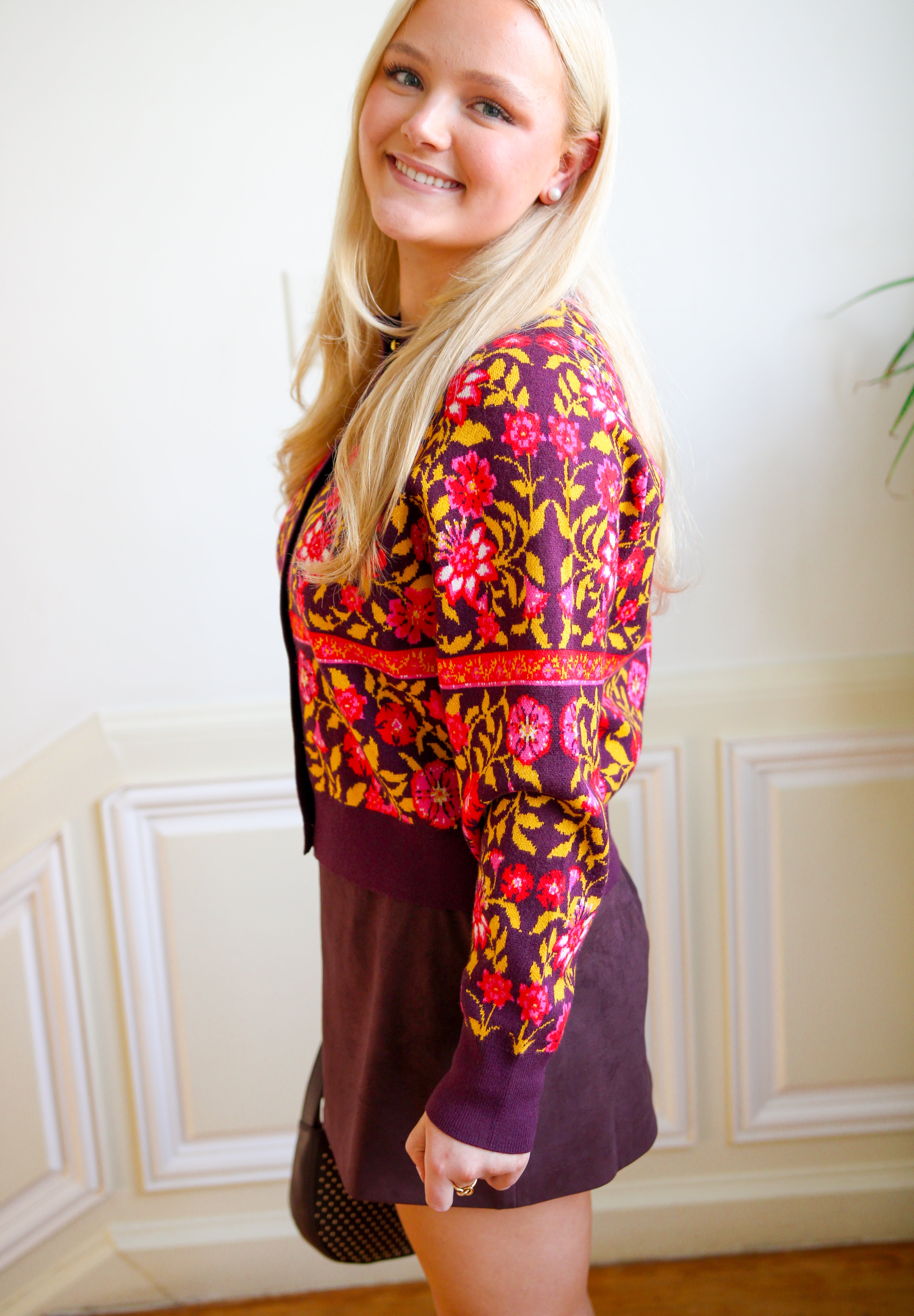 The Meredith cardigan in golden floral is the perfect addition to your fall closet! Pair with the Vivian skirt for the perfect head to look.