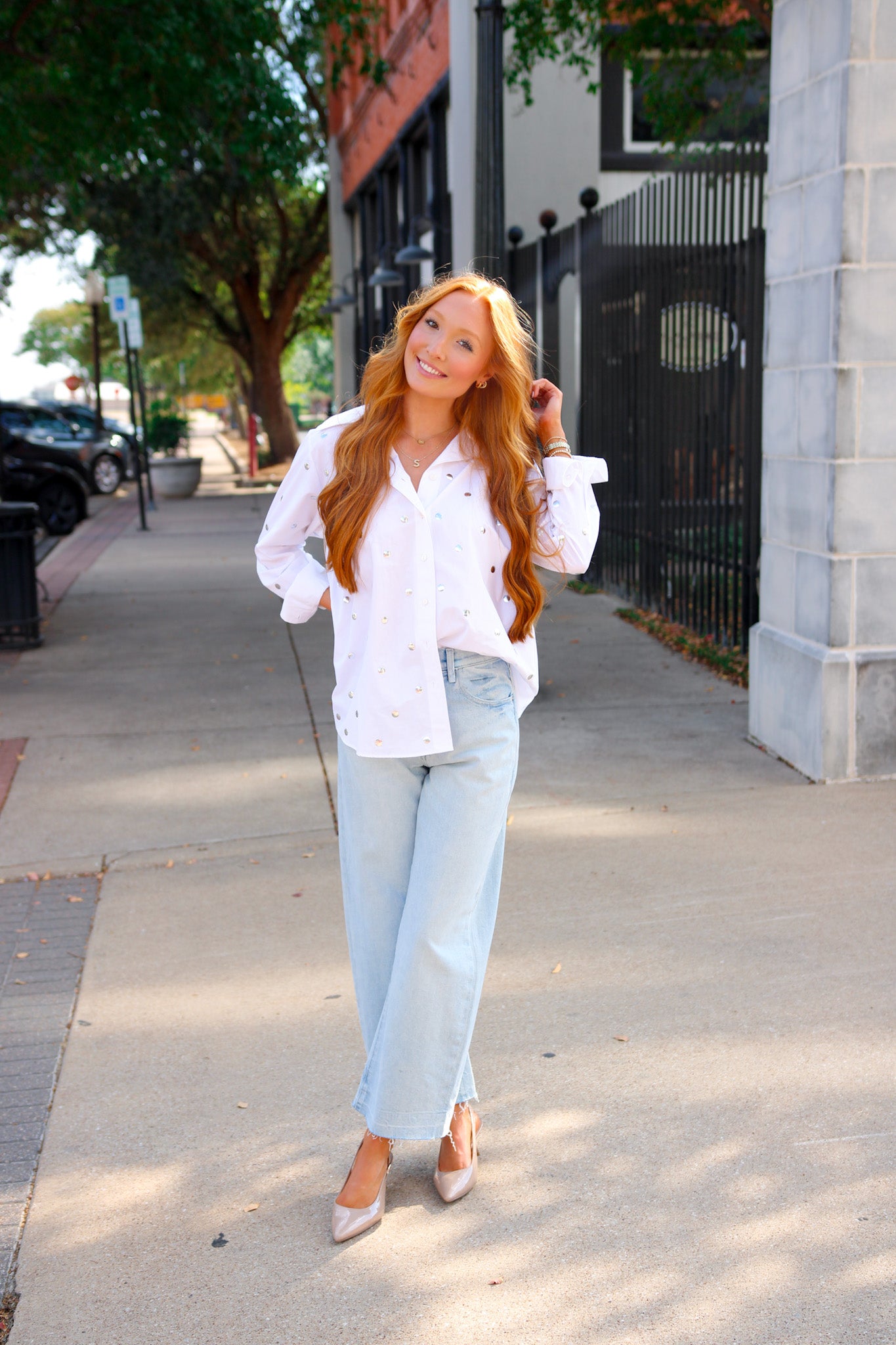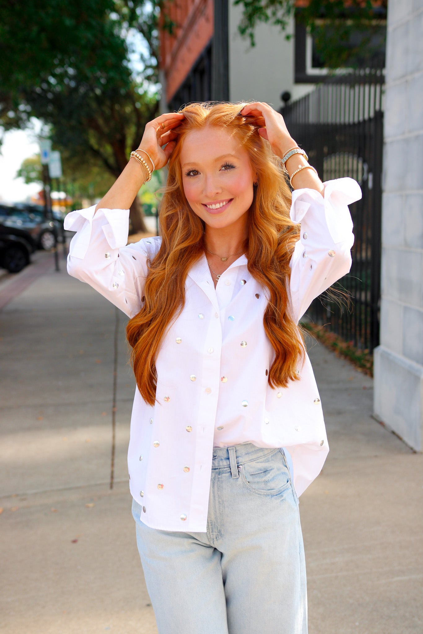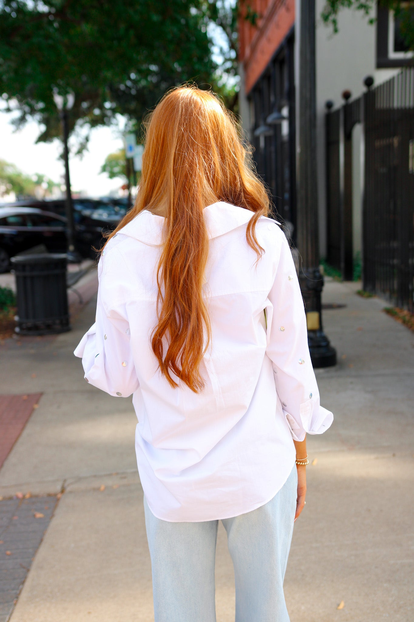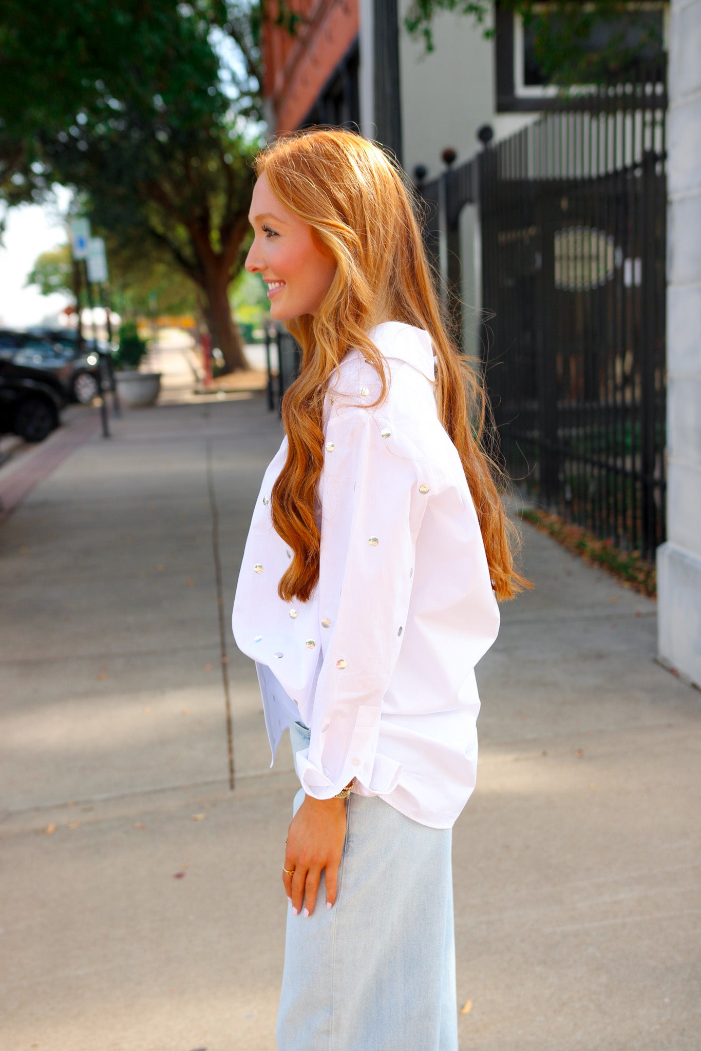The Murphy Shirt is tailored from 100% cotton and features bold metal stud details throughout. A classic shirt collar and long sleeves ground the look in timeless structure, while the studding adds a modern, fashion-forward twist.