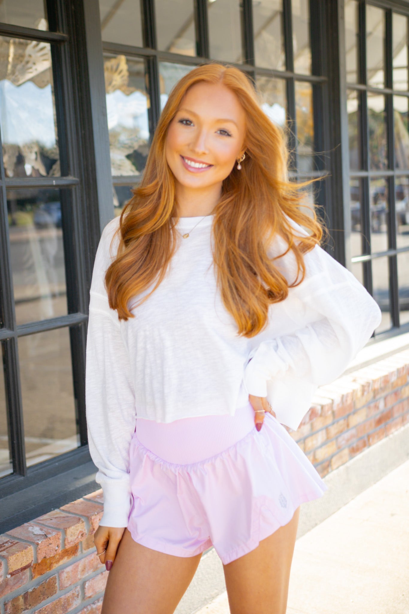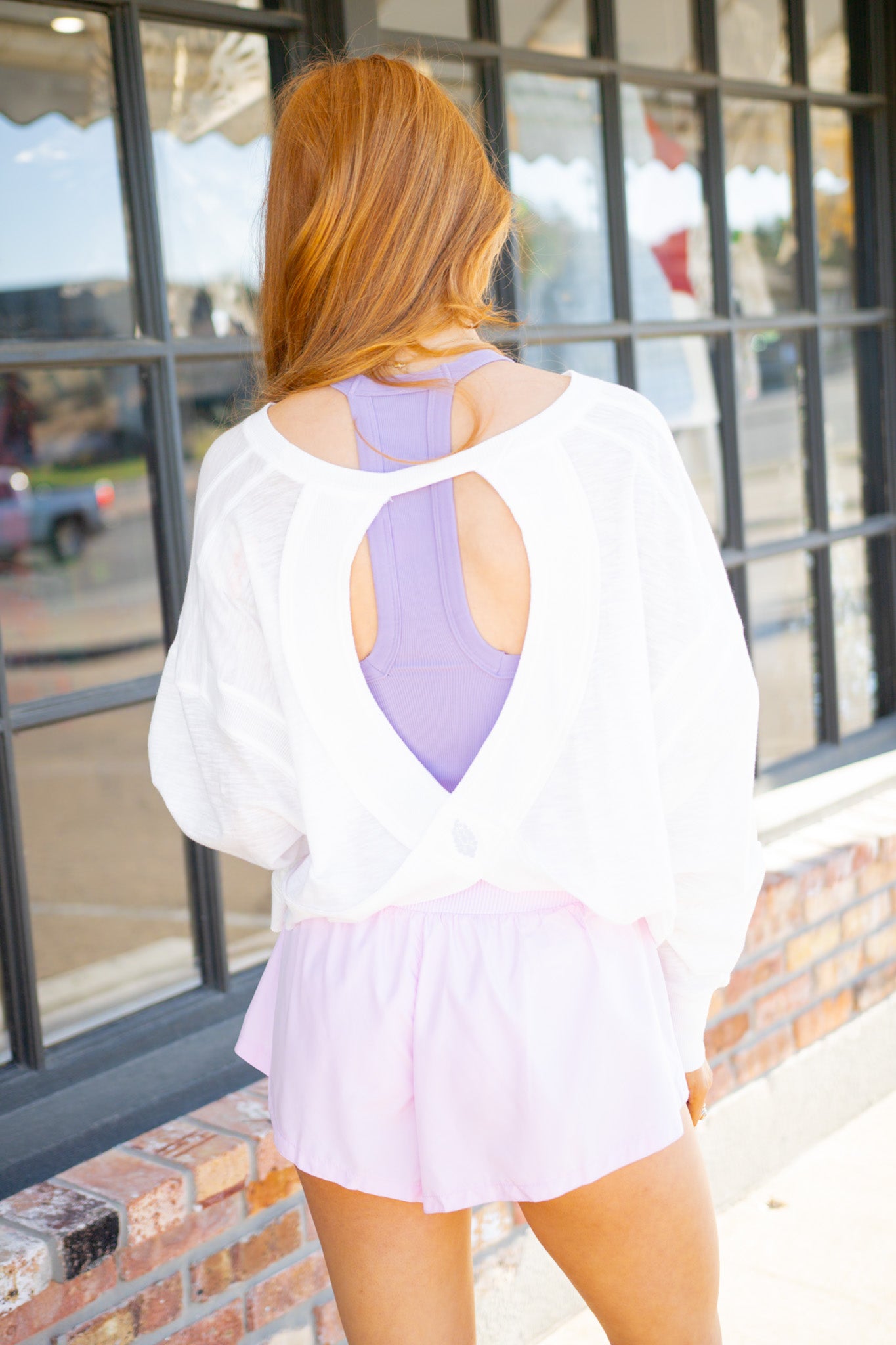 Perfect for going to or from a workout, this layer features a soft fabrication, slouchy crop and flattering back opening.