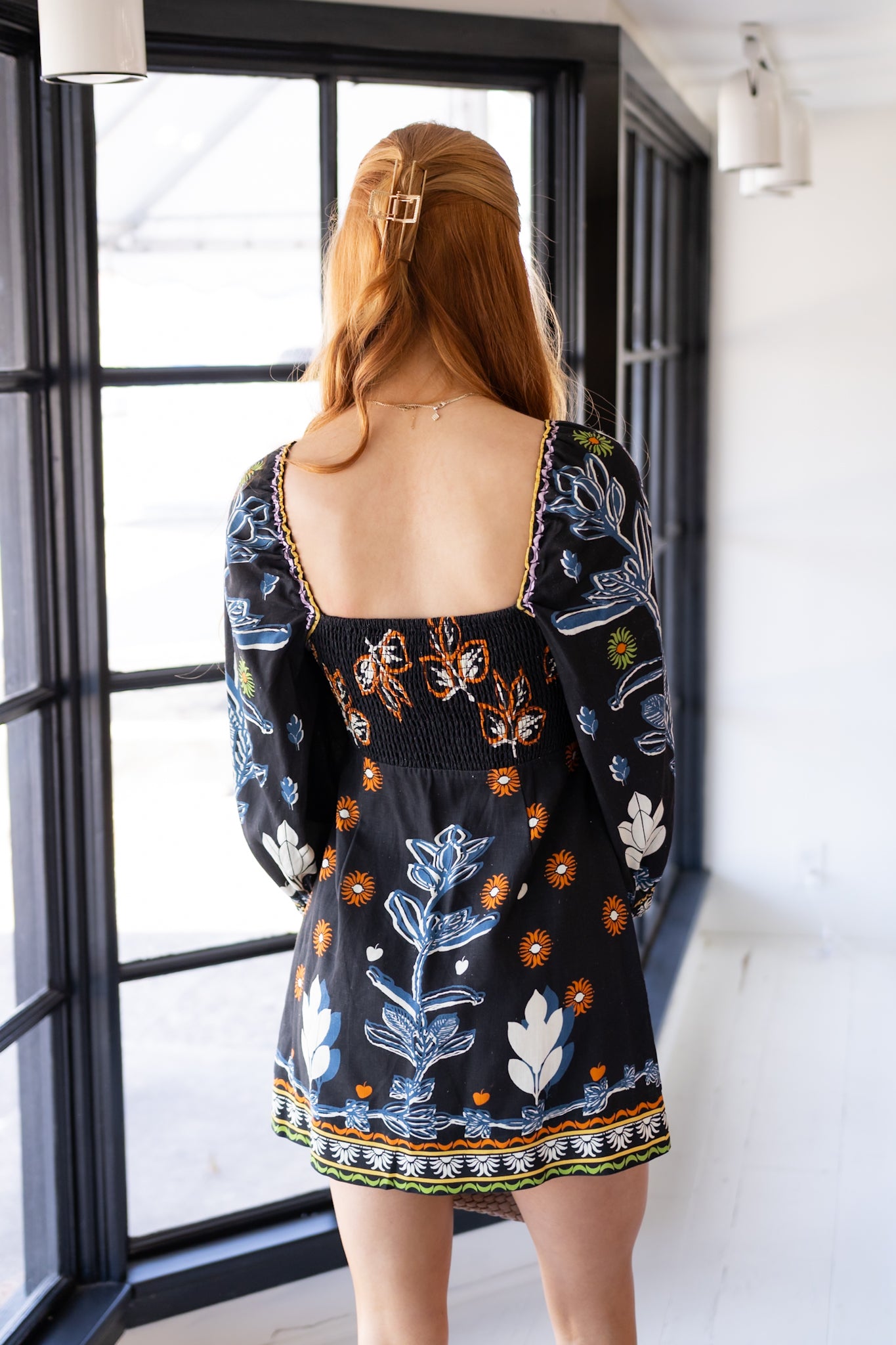 Get ready to turn heads in the playful Oslo Dress! With long sleeves and a sweetheart neckline, this mini dress is perfect for any occasion. The vibrant colors and smocked back add a touch of fun to your holiday wardrobe. Don't be surprised when you're the center of attention!