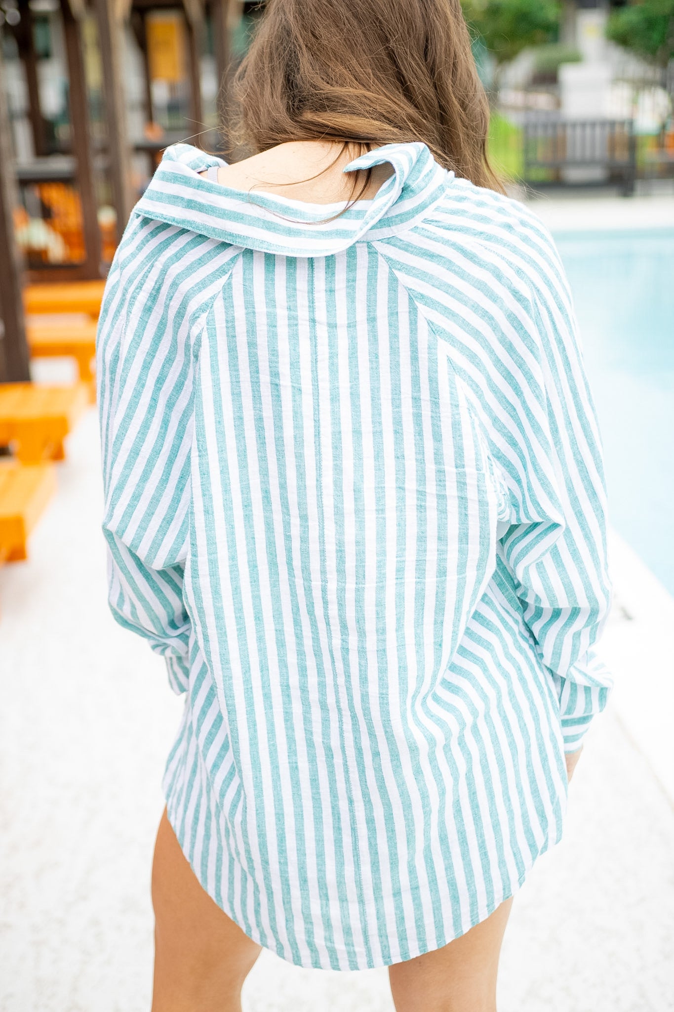 You'll love the easy, breezy comfort of this classic stripe button-up. Featuring that soft, drapey feel you look for, you can wear it alone or as a lightweight layer for an effortless look, no matter where your day takes you.