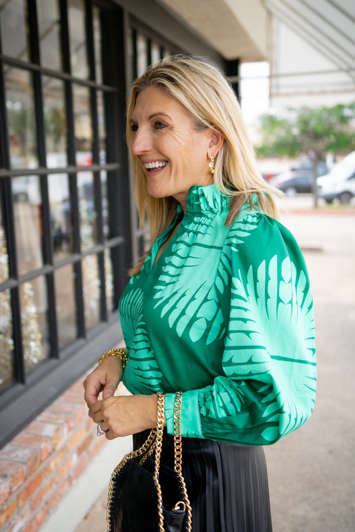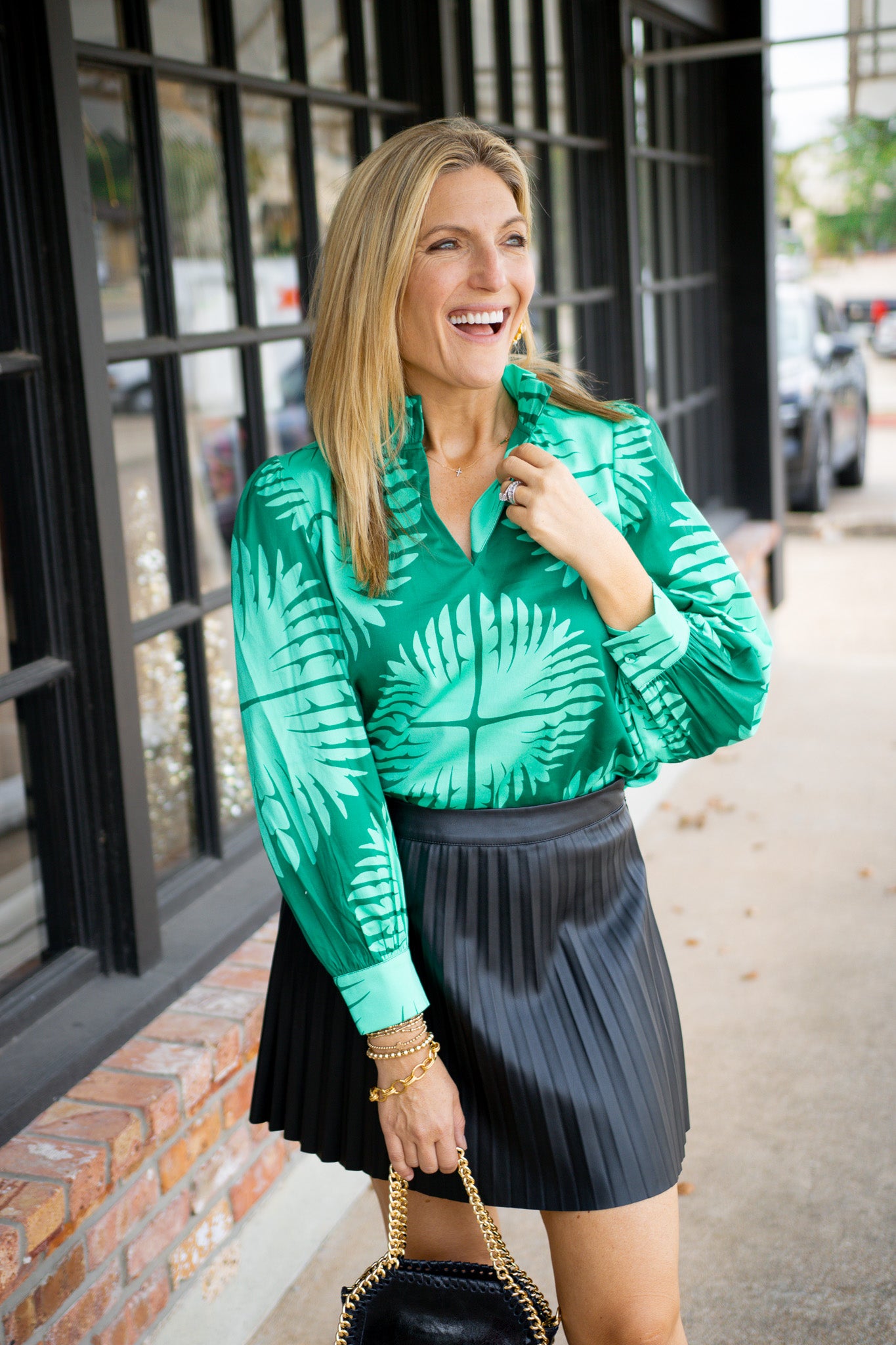 The Phoebe top is your new perfect grab-and-go top! It will pair perfectly with your favorite pair of slacks or shorts to complete the look! The Phoebe features a v-neck, cuffed sleeve, and a ruffled collar stand.