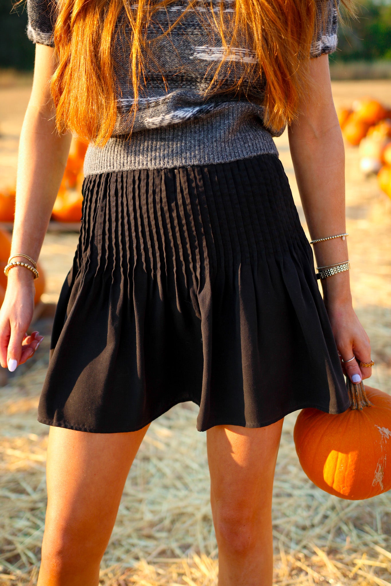 Pintuck Mini Skirt, Black