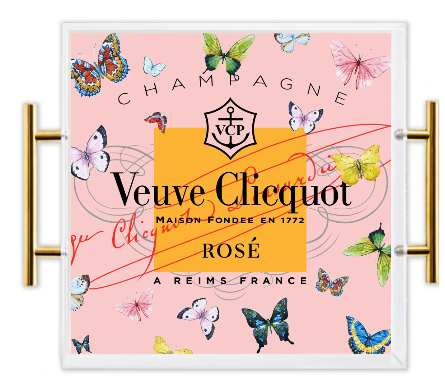Bring a little sparkle to the party with this dazzling Bubbly Butterfly tray! Yall loved our classic Pop The Bubbly trays so much, we had to give this design a fun twist of flare! The glossy acrylic tray features a playful butterfly design atop a champagne background. Perfect for any special occasion!