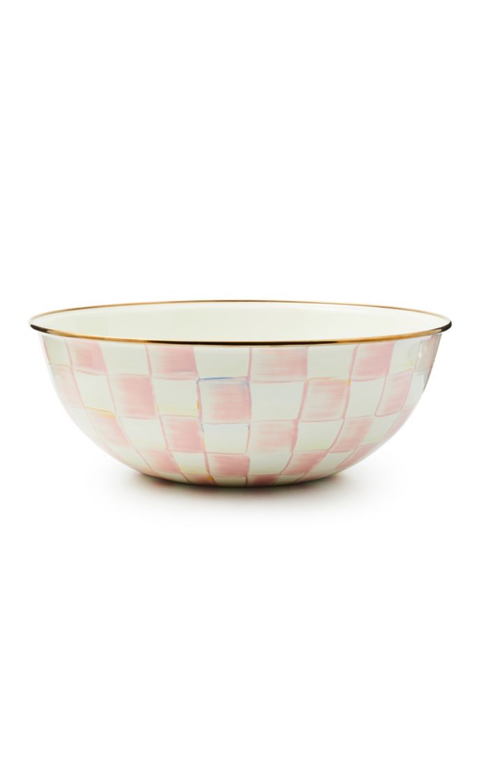 Heavy-gauge, hand-glazed steel underbody with hand-painted Rosy Checks, rimmed in bronzed stainless steel. Pieces may vary due to the handmade nature of each product. Imported.