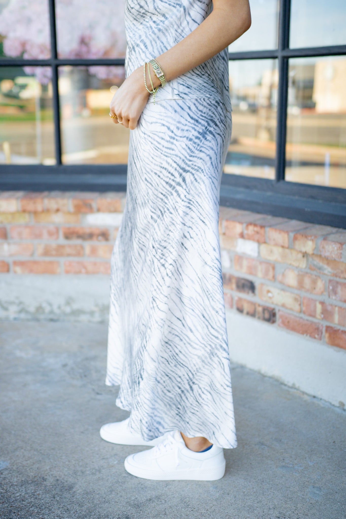 Sleek Bias Maxi Skirt, Snow Tiger