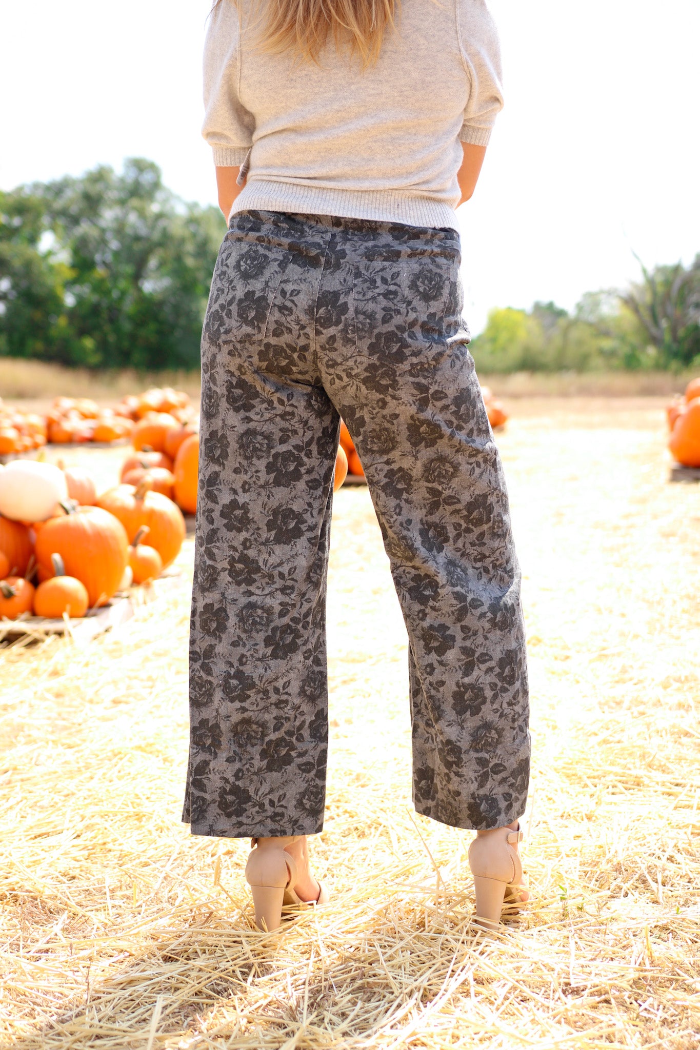 Step into style with the Smokey Blossoms Pants in charcoal! Featuring a charming floral print, these pants bring a fun twist to your wardrobe. Functional belt loops keep your look polished, while the front button and zipper offer easy wear. With handy front and back pockets, you have space to stash essentials while staying effortlessly chic. Perfect for playful days out and casual adventures!