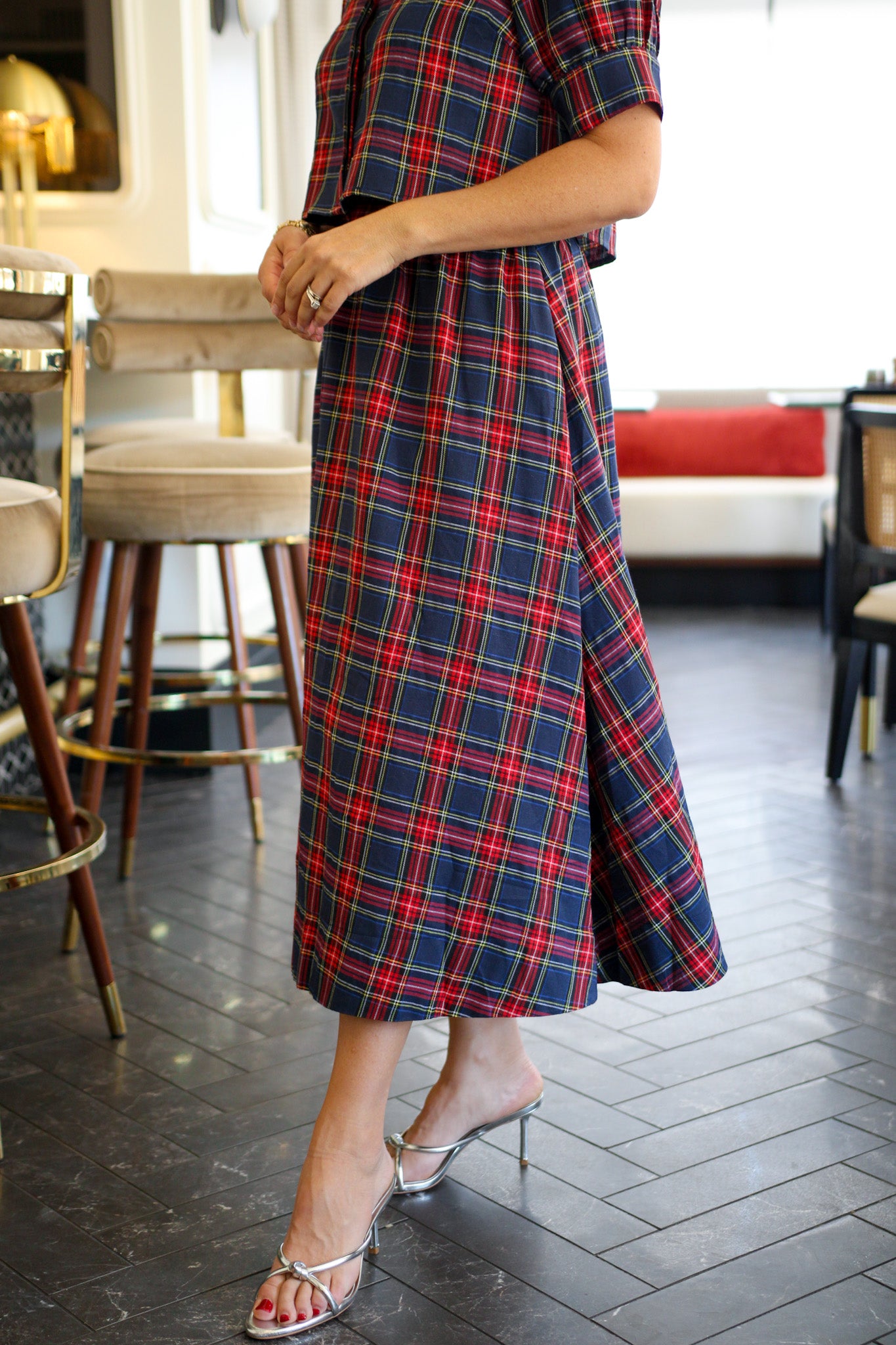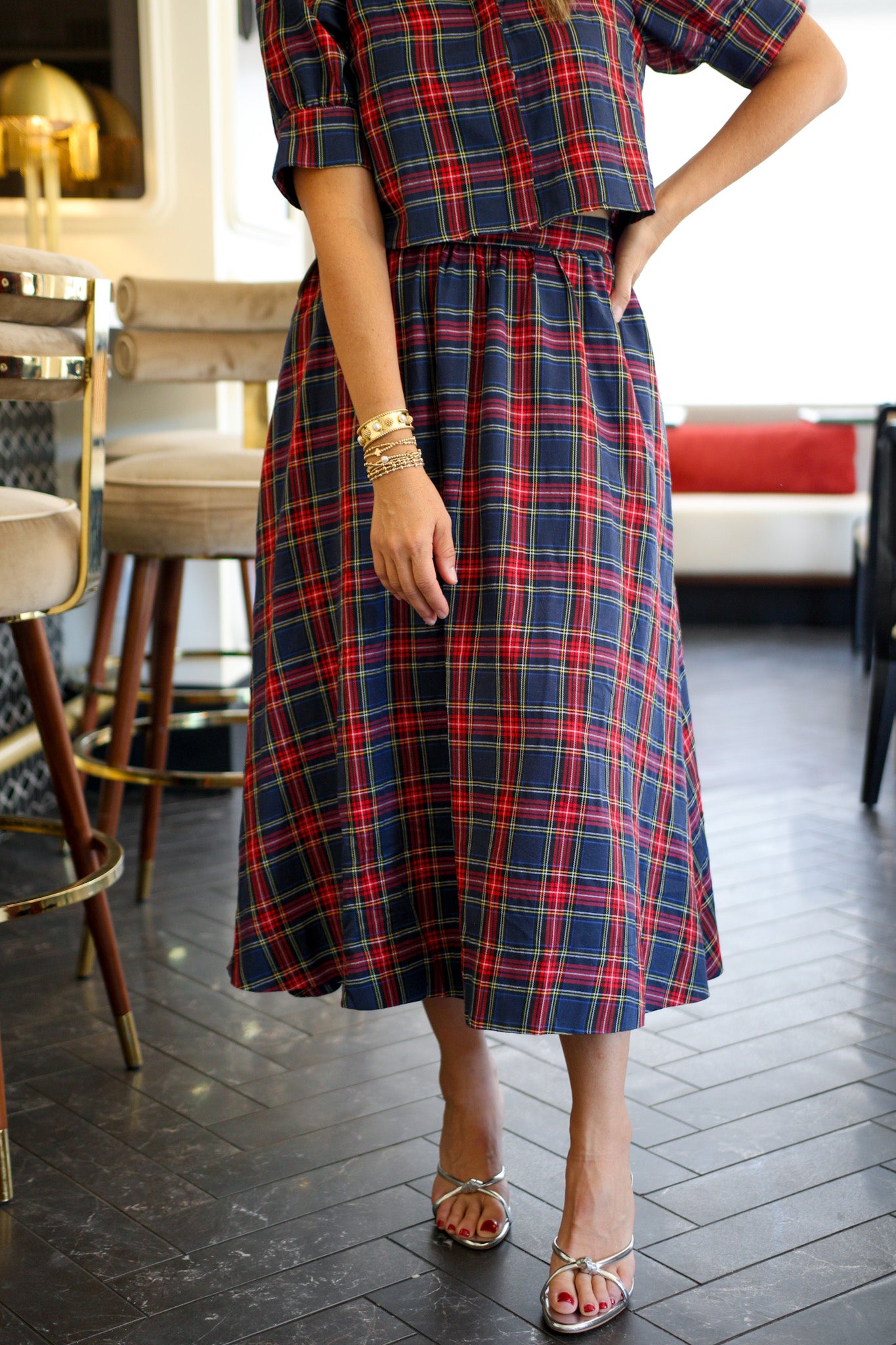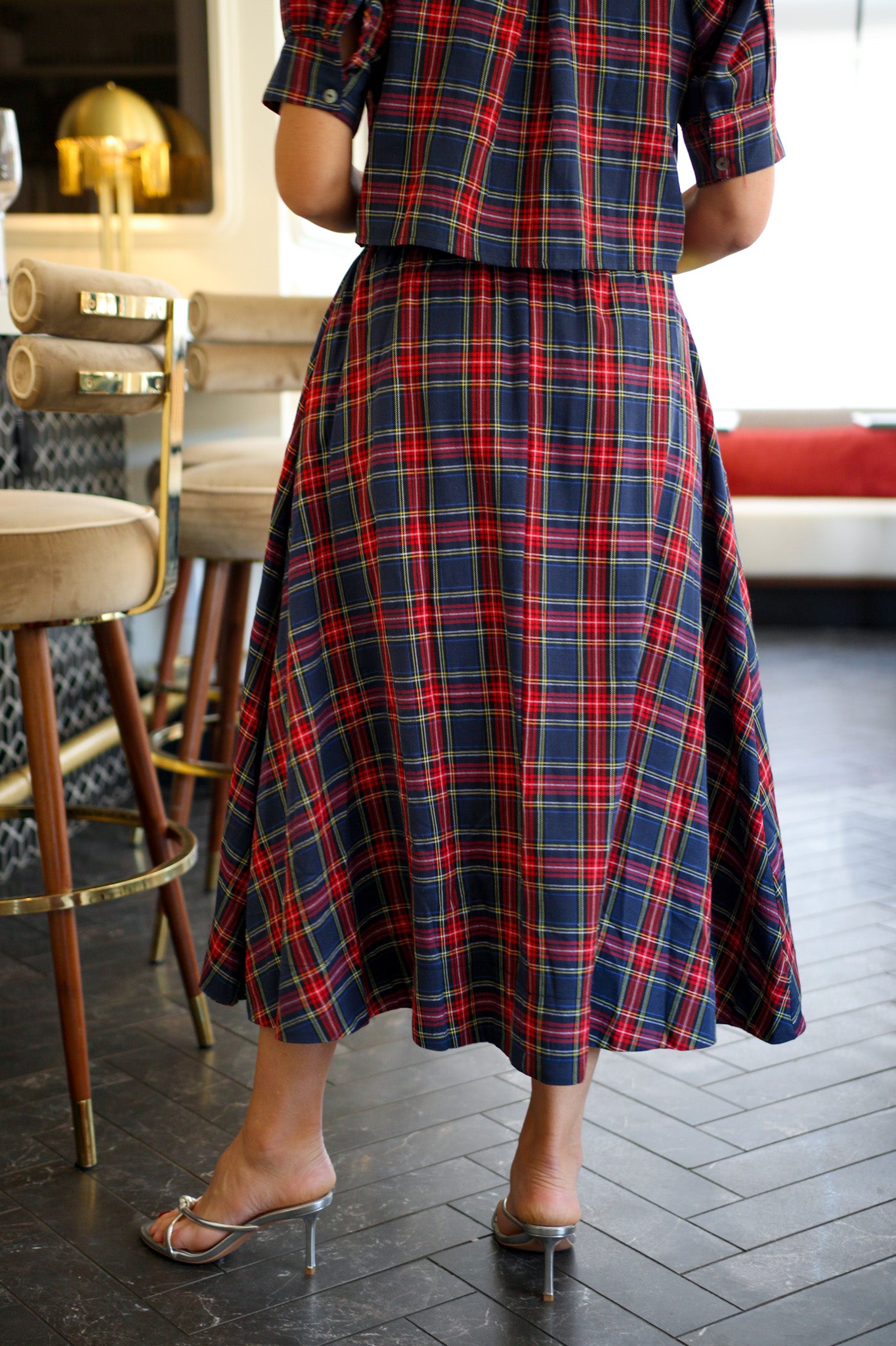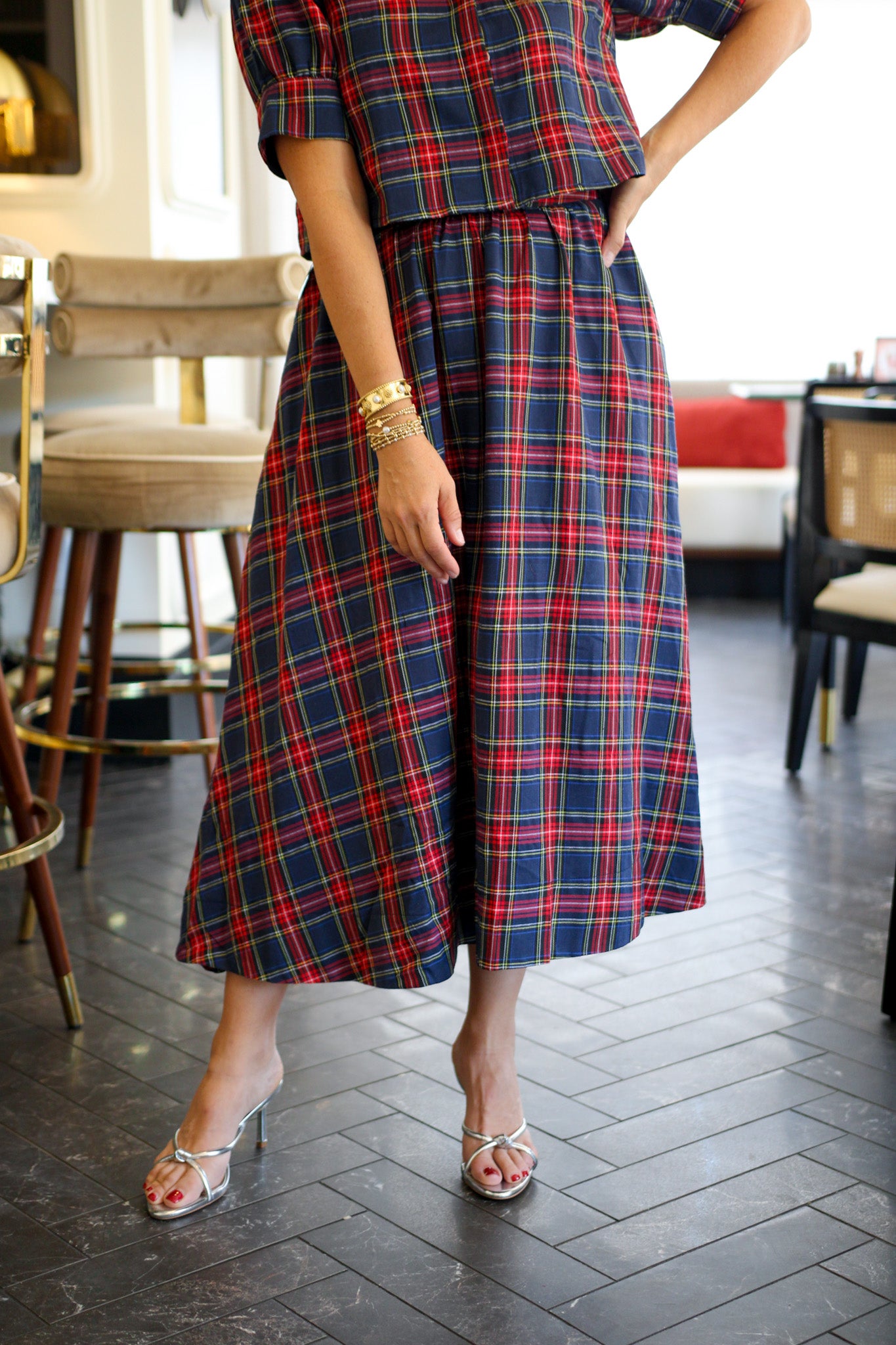 Celebrate the season in style with the Tinsel Touch Skirt in navy and red plaid. Featuring a comfy elastic waistband and handy side pockets, this lined skirt makes festive dressing effortless. Pair it perfectly with the Tinsel Touch Top to complete your holiday look with playful charm.