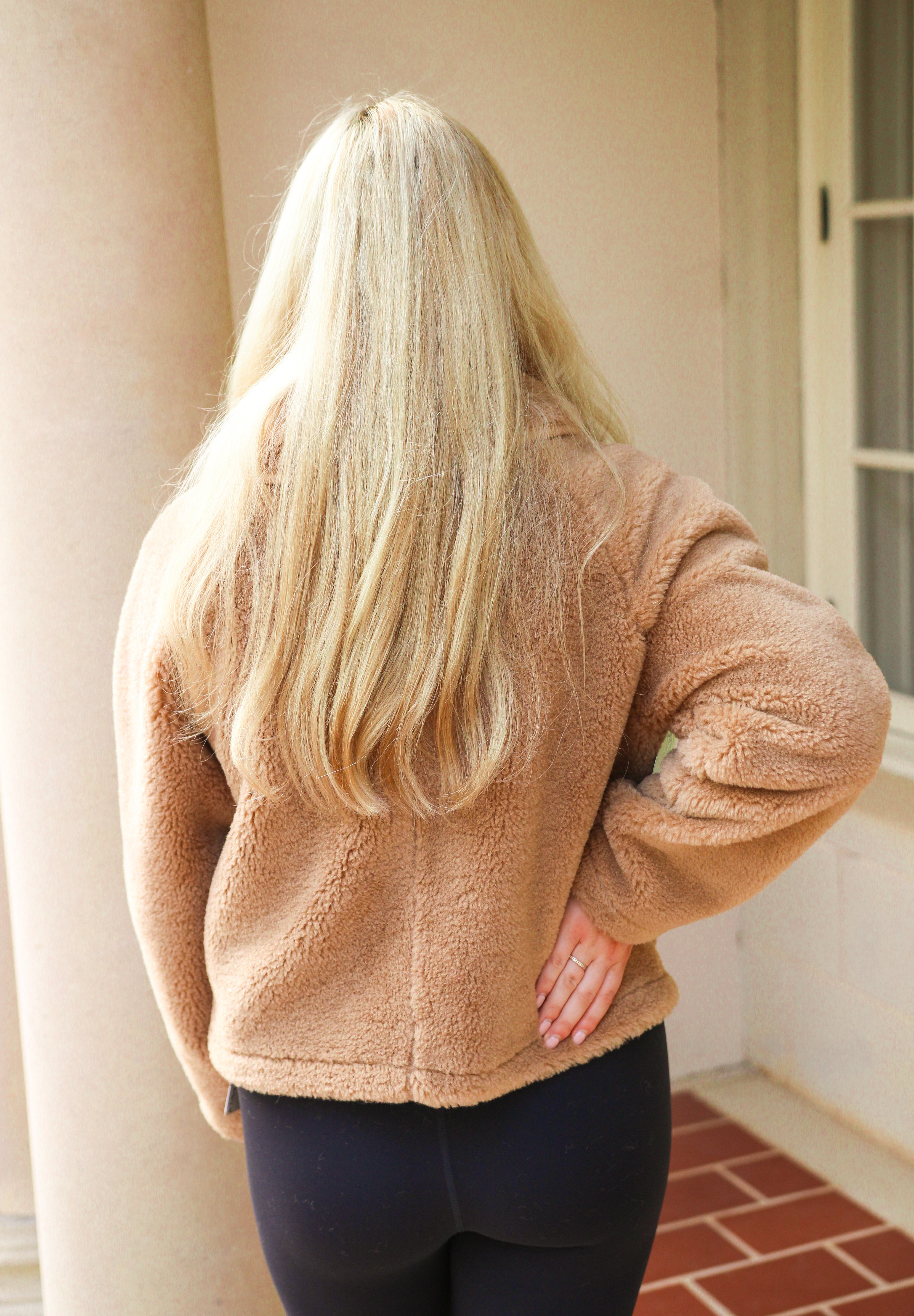 Faux suede and cozy sherpa combine in this cool-weather essential. Designed with moto-inspired lines, raglan sleeves, and contrast trim, it’s equal parts function and standout style.