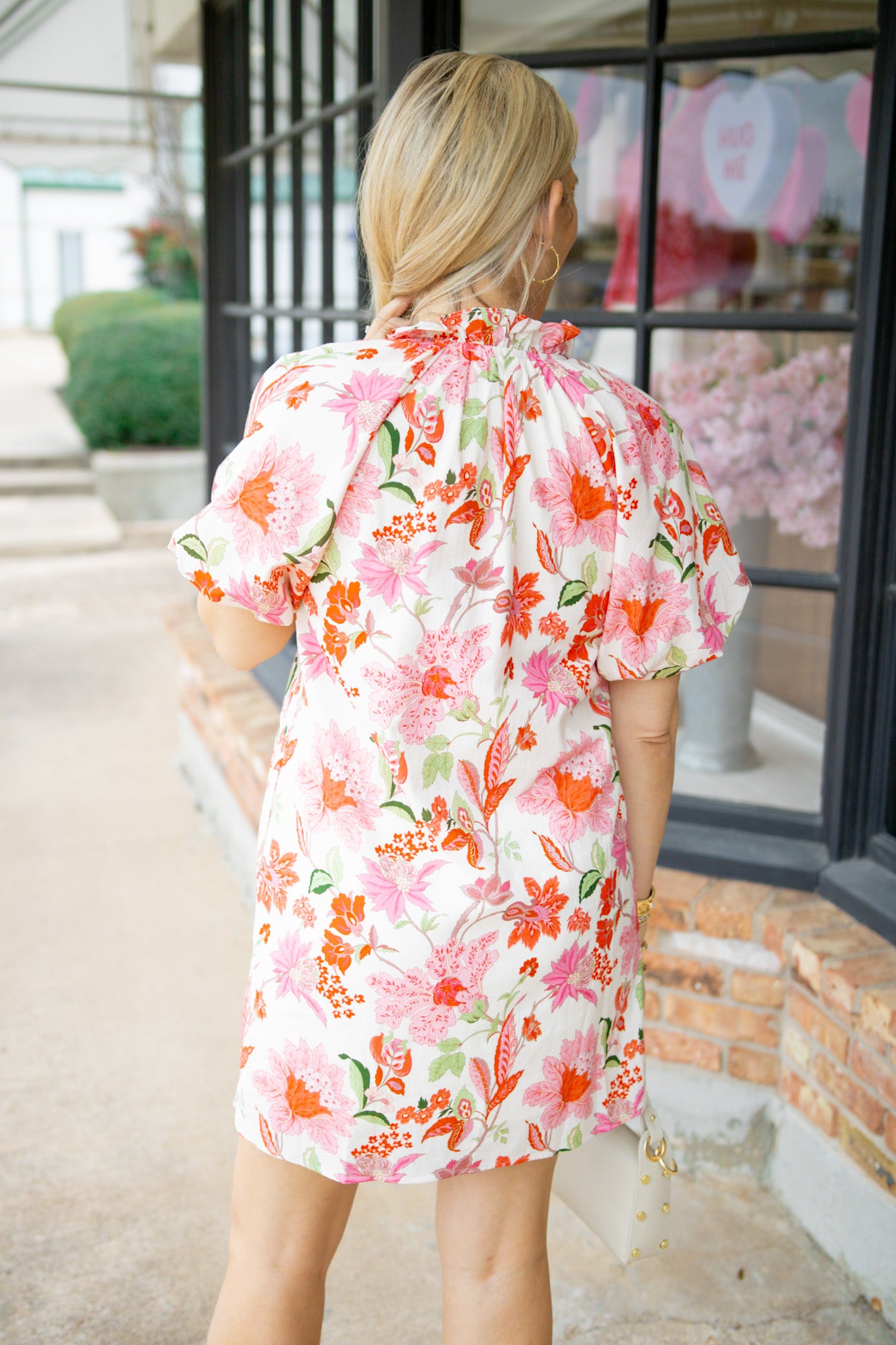 Twirl into spring with this charming pink floral dress. The flattering V-neckline pairs beautifully with romantic puff sleeves and a delicate ruffle collar for effortless elegance. Practical side pockets keep your essentials close while you move through your day. Perfect for brunch dates, garden parties, or whenever you want to feel like the main character in your own story.
